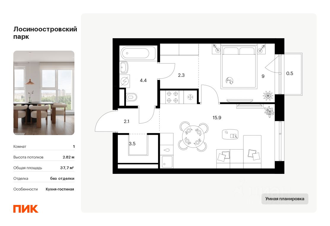 Продаётся 1-комн. квартира площадью 37,7 кв.м на 9 этаже 14 этажного дома (Корпус 2.3, Секция 1) проекта ПИК Лосиноостровский парк. Светлый просторный подъезд на уровне земли, функциональная планировка, большие окна, без отделки. Жилой квартал ''Лосиноостровский парк'' расположен на востоке Москвы, в районе Метрогородок. В 12 минутах пешком — станции метро и МЦК ''Бульвар Рокоссовского''. За 3 минуты на автомобиле можно доехать до СВХ, и за 15 — до ТТК. В 2024 году стартовало заселение первой очереди. Дворы-парки уже благоустроены: в них есть зелёные зоны для отдыха, а также площадки для игр и спорта. Совсем скоро через весь квартал протянется длинный пешеходный бульвар. На первых этажах домов разместятся магазины, кафе и другие сервисы. Район Метрогородок сейчас активно развивается. Скоро здесь появятся новые дома и современные прогулочные зоны. Сам район при этом останется таким же зелёным и просторным, со свежим воздухом и спокойным ритмом жизни. Большую его часть занимает лесопарк ''Лосиный остров'' — самый крупный национальный парк, расположенный в черте города. Дойти до него можно всего за 10 минут. Артикул 1017901 (Застройщик ООО СЗ ''ПЕРСПЕКТИВНЫЕ ИНВЕСТИЦИИ'')