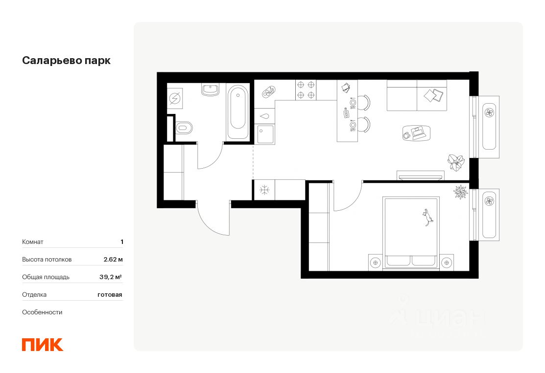 Продаётся 1-комн. квартира площадью 36,1 кв.м на 3 этаже 18 этажного дома (Корпус 74.9, Секция 9) проекта ПИК Саларьево парк. Светлый просторный подъезд на уровне земли, функциональная планировка, большие окна, c отделкой. Жилой район ''Саларьево парк'' расположен в Новой Москве, в четырёх километрах от МКАД по Киевскому шоссе. Две станции метро: ''Саларьево'' и ''Филатов луг'', — находятся в пешей доступности от проекта. Дойти до них можно за 510 минут. В квартале уже создана качественная среда, где есть абсолютно всё для полноценной жизни, работы и отдыха. Благодаря удобному расположению проекта всё важное будет рядом: детские сады, школы, кафе и рестораны, шопинг в торговых центрах, фитнес и даже аэропорт. Все корпуса в квартале гармонично сочетаются, образуя единую городскую среду. Между собой их объединяет невысокая этажность и натуральная цветовая гамма. Здесь приятно гулять и проводить время на улице всей семьёй. В ''Саларьево парке'' создана уникальная образовательная среда, включающая в себя шесть школ, рассчитанных на 6 250 учеников. Две из них уже открыты, их посещает 2 300 детей. Также на территории ''Саларьево парка'' находится 12 детских садов, один из которых с бассейном. Сейчас уже открыты 7 садов. В ''Саларьево парке'' открыта уникальная игровая площадка — PlayHub ''Оригами''. Здесь есть ручей, горка-труба и рельефные холмы. Взрослые смогут отдохнуть в уютном кафе, пока дети играют. Также на территории проекта есть SportHub — большая спортивная зона, разделённая по интересам и возрастам. Здесь можно заниматься разными видами спорта: футболом, баскетболом, волейболом и стритболом. Зимой центральную часть площадки превращают в каток. Во дворах-парках жилого квартала есть места для отдыха, детские и спортивные площадки. На первых этажах домов расположены магазины, кафе и полезные сервисы. Также вблизи проекта есть несколько масштабных торговых центров. До ТЦ ''Саларис'' пять минут пешком, до ''Рио'', Metro Cash & Carry и ''Леруа Мерлен'' — пять минут на автомобиле. Артикул 1007275 (Застройщик ООО ''Специализированный Застройщик ''Тирон'')