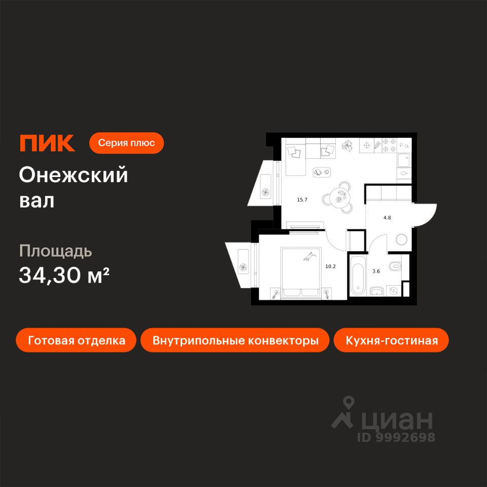 Новостройка! Продается 1-комн. кв-ра площадью 34,3 кв.м, (Корпус 1.1.4, Секция 4) 8 этаж 9-этажного дома в Онежский вал от ПИК. Квартал ''Серии плюс'' строится на севере Москвы, в 10 минутах пешком от станции метро ''Селигерская'' и МЦД ''Моссельмаш''. Проект понравится всем, кто привык к комфортной жизни и ценит возможность оставаться в ритме большого города и быстро добираться до центра столицы. Концепция проекта связывает квартал с природой Русского Севера. В проекте три акцентные башни с террасами и контрастными фасадами из матовой плитки и металла. Корпуса разной этажности повторяют силуэты хвойных деревьев, а архитектурные элементы на фасадах — напоминают природные рисунки скал. Блестящие алюминиевые панели в тон матовой плитке создают игру текстур на верхушках корпусов. Благодаря продуманности архитектуры, в квартирах есть панорамные окна в пол, открытые, французские, угловые балконы и террасы. Собственная продуманная инфраструктура проекта сделает жизнь в квартале удобной и поможет сэкономить время на бытовых делах. На территории мы построим свои детский сад, школу и поликлинику. А на первых этажах квартала откроются магазины, кафе, пункты выдачи и полезные сервисы. Для занятий спортом рядом с домом появится спортивный комплекс площадью 5000 м2 с залами для тренировок и просторным бассейном. А закрытый двор-парк и широкий пешеходный бульвар станут местом для прогулок и спокойного отдыха. #d07.02# Артикул 1058354 (Застройщик ООО СЗ ''ПрометейСити'')