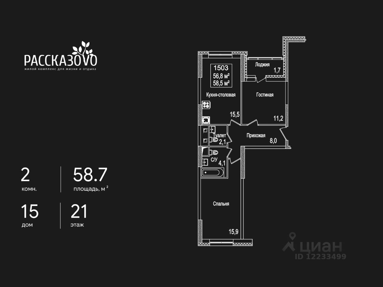 58 м² · Этаж 21 из 22