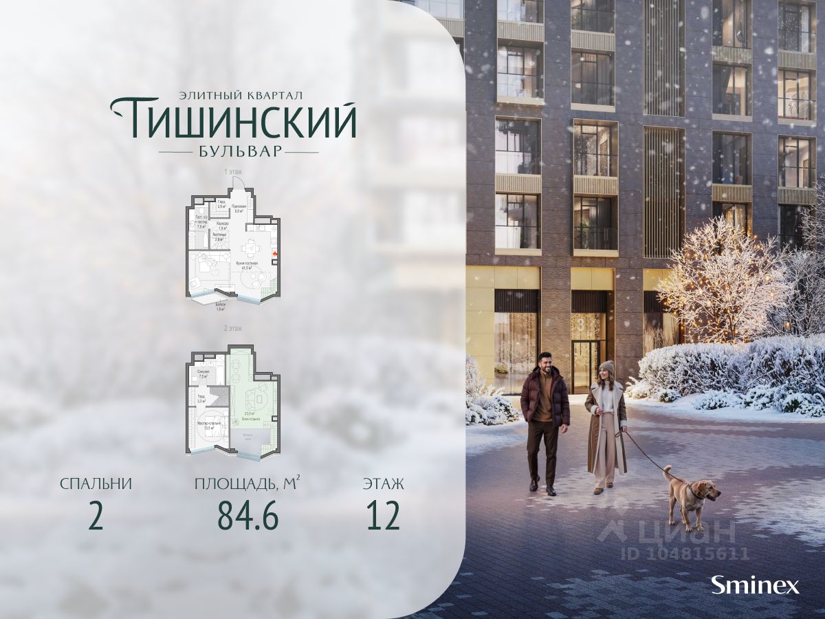 В продаже 2-комнатная квартира квартира в элитном квартале ''Тишинский бульвар''. Общая площадь квартиры - 84.60 кв.м. Этаж 12 из 14. Корпус К6. ''Тишинский бульвар'' - тихий зелёный элитный квартал на Тишинке, в престижном и комфортном районе центра Москвы. В нём создан уникальный для элитного дома прогулочный бульвар в своём огромном парке 1,9 га. В парке оборудованы зоны для активного и тихого отдыха, крытые галереи, приватные зелёные комнаты, многофункциональная спортивная площадка, воркаут-зона, детская площадка, сухой фонтан, ручей. В пешей доступности Римско-католический кафедральный собор. Всего в полутора километрах от квартала находятся Патриаршие пруды - излюбленное место для летних прогулок, воскресных бранчей и романтических ужинов. Белая площадь расположена ещё ближе - на расстоянии 1,2 километра. Это точка концентрации деловой жизни и модных ресторанов. В ''Тишинский бульваре'' только для жителей и их гостей создан уникальный для элитного дома прогулочный бульвар в собственном огромном парке площадью 2,1 га, который занимает 70% территории квартала. Бульвар проходит через весь квартал и объединяет в общее пространство три двора: Кленовый, Рябиновый и Ивовый. В парке созданы крытые галереи и приватные зелёные комнаты для отдыха и медитаций в любую погоду. Насыщенное озеленение многолетними растениями с разными периодами цветения сохраняет территорию квартала красивой круглый год. В квартале насыщенная инфраструктура только для жителей, включая Clubhouse. Здесь оборудованы пространства для здорового образа жизни по стандарту FIT LAB: в парке - многофункциональная спортивная площадка, воркаут-зона, место для занятий йогой и медитации, бесплатный фитнес-клуб с бассейном. Для маленьких жителей доступны детская площадка и игровая комната по стандарту KIDS LAB. Дома оснащены самыми полными и лучшими системами.