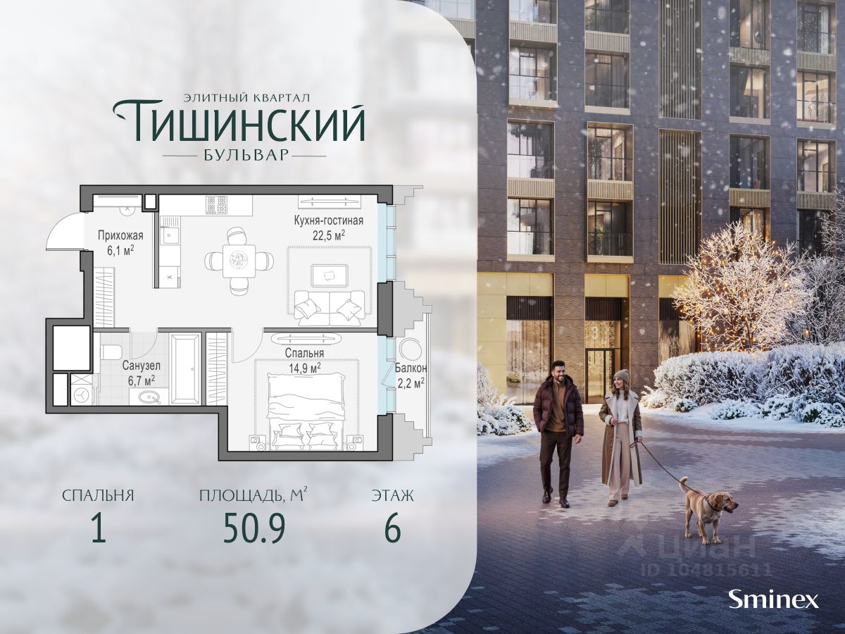 В продаже 1-комнатная квартира квартира в элитном квартале ''Тишинский бульвар''. Общая площадь квартиры - 50.90 кв.м. Этаж 6 из 14. Корпус К3. ''Тишинский бульвар'' - тихий зелёный элитный квартал на Тишинке, в престижном и комфортном районе центра Москвы. В нём создан уникальный для элитного дома прогулочный бульвар в своём огромном парке 1,9 га. В парке оборудованы зоны для активного и тихого отдыха, крытые галереи, приватные зелёные комнаты, многофункциональная спортивная площадка, воркаут-зона, детская площадка, сухой фонтан, ручей. В пешей доступности Римско-католический кафедральный собор. Всего в полутора километрах от квартала находятся Патриаршие пруды - излюбленное место для летних прогулок, воскресных бранчей и романтических ужинов. Белая площадь расположена ещё ближе - на расстоянии 1,2 километра. Это точка концентрации деловой жизни и модных ресторанов. В ''Тишинский бульваре'' только для жителей и их гостей создан уникальный для элитного дома прогулочный бульвар в собственном огромном парке площадью 2,1 га, который занимает 70% территории квартала. Бульвар проходит через весь квартал и объединяет в общее пространство три двора: Кленовый, Рябиновый и Ивовый. В парке созданы крытые галереи и приватные зелёные комнаты для отдыха и медитаций в любую погоду. Насыщенное озеленение многолетними растениями с разными периодами цветения сохраняет территорию квартала красивой круглый год. В квартале насыщенная инфраструктура только для жителей, включая Clubhouse. Здесь оборудованы пространства для здорового образа жизни по стандарту FIT LAB: в парке - многофункциональная спортивная площадка, воркаут-зона, место для занятий йогой и медитации, бесплатный фитнес-клуб с бассейном. Для маленьких жителей доступны детская площадка и игровая комната по стандарту KIDS LAB. Дома оснащены самыми полными и лучшими системами.