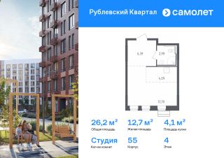 Строим кварталы для жизни с заботой о будущем. Предлагается квартира студия комфорт-класса 26,17 кв.м в корпусе 55 на 4 этаже, в ЖК ''Рублевский Квартал''Квартира с чистовой отделкой. Доступность дополнительных опций уточняйте у застройщика.Приобрести квартиру возможно по специальным акциям от застройщика, с текущими условиями акций можно ознакомиться в блоке ''Акций''.Цена динамическая и может отличаться, уточняйте актуальность у застройщика.Жилой комплекс ''Рублевский Квартал'' на западе Москвы окружен Подушкинским и Дубковским лесами. Рядом ж/д станция Усово и МЦД-1 ''Одинцово''. На территории комплекса — школа, детский сад, поликлиника и торговый центр. Архитектура с переменной этажностью от 3 до 12 этажей гармонично вписывается в природу. Закрытый двор-парк, кленовые аллеи и игровые зоны создают уют. Квартиры с отделкой и живописными видами на лес.
