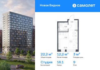 Строим кварталы для жизни с заботой о будущем. Предлагается квартира студия комфорт-класса 22,2 кв.м в корпусе 16.1 на 9 этаже, в ЖК ''Новое Видное''Квартира с чистовой отделкой. Доступность дополнительных опций уточняйте у застройщика.Приобрести квартиру возможно по специальным акциям от застройщика, с текущими условиями акций можно ознакомиться в блоке ''Акций''.Цена динамическая и может отличаться, уточняйте актуальность у застройщика.Жилой комплекс ''Новое Видное'' — масштабный проект из 30 урбан-блоков, который находится рядом с Видновским лесопарком и в 8 км от МКАДа. В отделке фасадов — декоративный кирпич в белом, сером, бежевом и терракотовом оттенках. Такое сочетание оттенков словно нежная игра света на песчаной глади озера — тонкие линии и мягкие переливы создают волшебный узор, отражающий красоту природы. Жить здесь легко и комфортно: рядом с домом будет все важное и необходимое — от магазинов и кафе до плейхабов и набережной. В ''Новом Видном'' вы сможете слушать джазовые мотивы города и наслаждаться освежающей близостью леса.''Новое Видное'' — это: 1. До МКАДа — 8 км2. 20 минут ходьбы или 5 минут на авто до ж/д станции Калинина3. 25 минут на авто до аэропорта Домодедово 4. В будущем — прямой выезд на Каширское шоссе5. Видновский парк и Пуговичинский пруд рядом с домом 6. Музей-заповедник ''Горки Ленинские'' в нескольких минутах на авто 7. 12 минут на авто до конных клубов ''Задор'', ''Юланта'' и ''Казачий Дозор''8. 4 школы, 7 детских садов, поликлиника, станция скорой помощи9. Приватные дворы без машин10. Покет-парки для спокойного отдыха 11. Спортивные и игровые площадки12. Входы в корпуса без ступеней и высоких порогов13. Помещения для колясок в лобби14. Панорамное остекление балконов15. Велодорожки по всей территории квартала