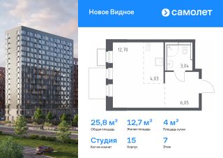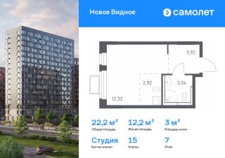 Строим кварталы для жизни с заботой о будущем. Предлагается квартира студия комфорт-класса 22,2 кв.м в корпусе 15 на 12 этаже, в ЖК ''Новое Видное''Квартира с чистовой отделкой. Доступность дополнительных опций уточняйте у застройщика.Приобрести квартиру возможно по специальным акциям от застройщика, с текущими условиями акций можно ознакомиться в блоке ''Акций''.Цена динамическая и может отличаться, уточняйте актуальность у застройщика.Жилой комплекс ''Новое Видное'' — масштабный проект из 30 урбан-блоков, который находится рядом с Видновским лесопарком и в 8 км от МКАДа. В отделке фасадов — декоративный кирпич в белом, сером, бежевом и терракотовом оттенках. Такое сочетание оттенков словно нежная игра света на песчаной глади озера — тонкие линии и мягкие переливы создают волшебный узор, отражающий красоту природы. Жить здесь легко и комфортно: рядом с домом будет все важное и необходимое — от магазинов и кафе до плейхабов и набережной. В ''Новом Видном'' вы сможете слушать джазовые мотивы города и наслаждаться освежающей близостью леса.''Новое Видное'' — это: 1. До МКАДа — 8 км2. 20 минут ходьбы или 5 минут на авто до ж/д станции Калинина3. 25 минут на авто до аэропорта Домодедово 4. В будущем — прямой выезд на Каширское шоссе5. Видновский парк и Пуговичинский пруд рядом с домом 6. Музей-заповедник ''Горки Ленинские'' в нескольких минутах на авто 7. 12 минут на авто до конных клубов ''Задор'', ''Юланта'' и ''Казачий Дозор''8. 4 школы, 7 детских садов, поликлиника, станция скорой помощи9. Приватные дворы без машин10. Покет-парки для спокойного отдыха 11. Спортивные и игровые площадки12. Входы в корпуса без ступеней и высоких порогов13. Помещения для колясок в лобби14. Панорамное остекление балконов15. Велодорожки по всей территории квартала
