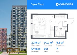 Строим кварталы для жизни с заботой о будущем. Предлагается квартира студия комфорт-класса 22,6 кв.м в корпусе 8.2 на 16 этаже, в ЖК ''Горки Парк''Квартира с чистовой отделкой. Доступность дополнительных опций уточняйте у застройщика.Приобрести квартиру возможно по специальным акциям от застройщика, с текущими условиями акций можно ознакомиться в блоке ''Акций''.Цена динамическая и может отличаться, уточняйте актуальность у застройщика.Уединенный жилой комплекс, где хочется остаться. До МКАДа всего 10 минут на авто, а прямо рядом с домами есть лес — идеально для прогулок, занятий спортом и медитаций. Фасады 1117-этажных корпусов дополняют яркие вставки — каждый дом особенный. На территории проекта появятся ФОК и поликлиника, детские сады и школы. Наслаждаться счастливой жизнью в квартале можно уже сейчас — здесь есть готовые дома, но при этом появляются и новые корпуса. ''Горки Парк'' — это: 1. 10 минут на машине до МКАДа 2. 20 минут на машине до метро ''Домодедовская'' и 18 минут — до аэропорта Домодедово3. Пешеходные бульвары и пространства для отдыха4. Выход в лесопарк с благоустроенными экотропами5. Приватные дворы без машин 6. Экомаршрут в Коробовском лесопарке рядом с домом, который соединит кварталы: ''Пригород Лесное'', ''Горки Парк'' и ''Богдановский Лес''7. Запланировано 3 школы и 6 детских садов8. Уже построили детский сад и школу со спортивным ядром, где смогут тренироваться жители квартала9. Поликлиника и спорткомплекс внутри проекта10. Магазины и кофейни на первых этажах11. Игровые площадки и воркаут-зона 12. Прогулочная зона рядом с кварталом13. Спортивно-игровой кластер14. Площадки для занятий йогой и игры в пинг-понг — в части дворов15. Рабочий остров и площадка для отдыха — в части дворов16. Веревочный панда-парк — в будущем 17. Площадка для выгула собак18. Балконы с панорамным остеклением19. Увеличенные окна в квартирах20. Входы на уровне земли21. Места для хранения велосипедов и колясок