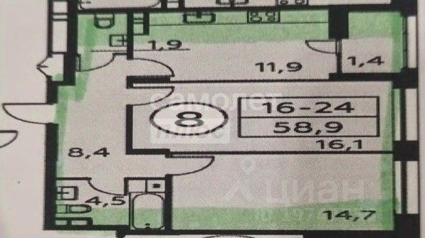 58 м² · Этаж 7 из 38
