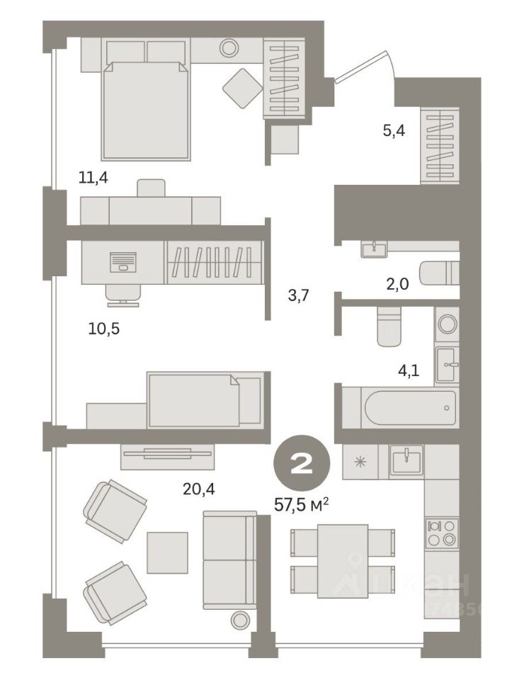 57 м² · Этаж 4 из 10
