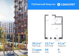 Предлагается квартира студия комфорт-класса 26,17 кв.м в корпусе 56 на 6 этаже, в ЖК ''Рублевский Квартал''Квартира с предчистовой отделкой. Доступность дополнительных опций уточняйте у застройщика.Приобрести квартиру возможно по специальным акциям от застройщика, с текущими условиями акций можно ознакомиться в блоке ''Акций''.Цена динамическая и может отличаться, уточняйте актуальность у застройщика.Жилой комплекс ''Рублевский Квартал'' на западе Москвы окружен Подушкинским и Дубковским лесами. Рядом ж/д станция Усово и МЦД-1 ''Одинцово''. На территории комплекса — школа, детский сад, поликлиника и торговый центр. Архитектура с переменной этажностью от 3 до 12 этажей гармонично вписывается в природу. Закрытый двор-парк, кленовые аллеи и игровые зоны создают уют. Квартиры с отделкой и живописными видами на лес.