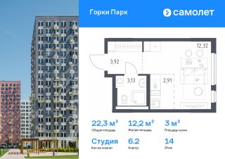 Строим кварталы для жизни с заботой о будущем. Предлагается квартира студия комфорт-класса 22,28 кв.м в корпусе 6.2 на 14 этаже, в ЖК ''Горки Парк''Квартира с чистовой отделкой. Доступность дополнительных опций уточняйте у застройщика.Приобрести квартиру возможно по специальным акциям от застройщика, с текущими условиями акций можно ознакомиться в блоке ''Акций''.Цена динамическая и может отличаться, уточняйте актуальность у застройщика.Уединенный жилой комплекс, где хочется остаться. До МКАДа всего 10 минут на авто, а прямо рядом с домами есть лес — идеально для прогулок, занятий спортом и медитаций. Фасады 1117-этажных корпусов дополняют яркие вставки — каждый дом особенный. На территории проекта появятся ФОК и поликлиника, детские сады и школы. Наслаждаться счастливой жизнью в квартале можно уже сейчас — здесь есть готовые дома, но при этом появляются и новые корпуса. ''Горки Парк'' — это: 1. 10 минут на машине до МКАДа 2. 20 минут на машине до метро ''Домодедовская'' и 18 минут — до аэропорта Домодедово3. Пешеходные бульвары и пространства для отдыха4. Выход в лесопарк с благоустроенными экотропами5. Приватные дворы без машин 6. Экомаршрут в Коробовском лесопарке рядом с домом, который соединит кварталы: ''Пригород Лесное'', ''Горки Парк'' и ''Богдановский Лес''7. Запланировано 3 школы и 6 детских садов8. Уже построили детский сад и школу со спортивным ядром, где смогут тренироваться жители квартала9. Поликлиника и спорткомплекс внутри проекта10. Магазины и кофейни на первых этажах11. Игровые площадки и воркаут-зона 12. Прогулочная зона рядом с кварталом13. Спортивно-игровой кластер14. Площадки для занятий йогой и игры в пинг-понг — в части дворов15. Рабочий остров и площадка для отдыха — в части дворов16. Веревочный панда-парк — в будущем 17. Площадка для выгула собак18. Балконы с панорамным остеклением19. Увеличенные окна в квартирах20. Входы на уровне земли21. Места для хранения велосипедов и колясок