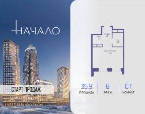 В престижном районе Пресня, на перекрестке делового и исторического центров Москвы, продается студия площадью 35.90 кв. м без отделки. Квартира находится на 12 этаже 48-этажного дома, в новом элитном жилом комплексе ''Начало'' от девелопера ''Донстрой''. Реализация проекта запланирована на 1 квартал 2030 года.Начало - футуристический дом на Пресне в нескольких минутах от Сити и Садового кольца. Проект по-настоящему космического масштаба, где есть все, чтобы раскрыть себя и свои возможности. РасположениеПресня - один из самых престижных районов Москвы. Жить здесь - значит стать частью истории столицы, быть в эпицентре деловой активности города и ощущать, как сама Вселенная вращается вокруг вас.- 5 минут пешком до Красногвардейских прудов,- 15 минут пешком до ст. метро ''Улица 1905 года'',- 6 минут на автомобиле до Садового кольца и небоскрёбов ''Москва-Сити'',- 12 минут на автомобиле до Кремля.Архитектура как путешествиеКак росток пробивает скалу, как растет кристалл, как ракета устремляется ввысь - так формируется архитектурный образ этого дома. Точно выверенный баланс между футуристичными формами и функциональным содержанием дома выводит жизнь в нем на новую орбиту. Стеклянные фасады отражают небо и город, превращая здание в зеркало для окружающего ландшафта.Двор между небом и землёйПросторная территория двора с тремя тематическими зонами отдыха: ''Млечный путь'' - для детских игр и развлечений, ''Космический сад'' - для тихого отдыха и релакса, ''Метеоритный сад'' - для любителей спорта.Открытый променад - сквозной маршрут на крыше стилобата с зонами отдыха, занятий спортом, детских игр и совместной работы. Все площадки плавно связаны между собой прогулочной дорожкой.Теплая кольцевая галерея и мосты над пространством двора - все корпуса ''стыкуются'', точно модули космической станции.Главный центр притяженияВ составе проекта возводится собственный комьюнити-центр, где создана идеальная атмосфера для любых начинаний: - Детский клуб для будущих покорителей Вселенной,- Коворкинги для решения задач планетарного и космического масштабов,- Переговорные для судьбоносных и просто важных встреч,- Лаунжи с атмосферой дзена и релакса,- Библиотека для спокойного чтения,- Кинотеатр для классики и блокбастеров.Территория комфорта и приватностиВсё нужное рядом:- Современный образовательный центр со школой и детским садом - для ваших детей,- Фитнес-центр с бассейном - для релакса и борьбы со стрессом,- Ресторанная улица: кафе, рестораны, летние террасы - для деловых обедов и семейных ужинов,- Пекарня и минимаркет в доме - для ежедневных покупок,- Сквер у дома - для неспешных прогулок и спокойного отдыха,- Никаких такси на улице. Машина заберет вас прямо в подземном паркинге вашего корпуса.