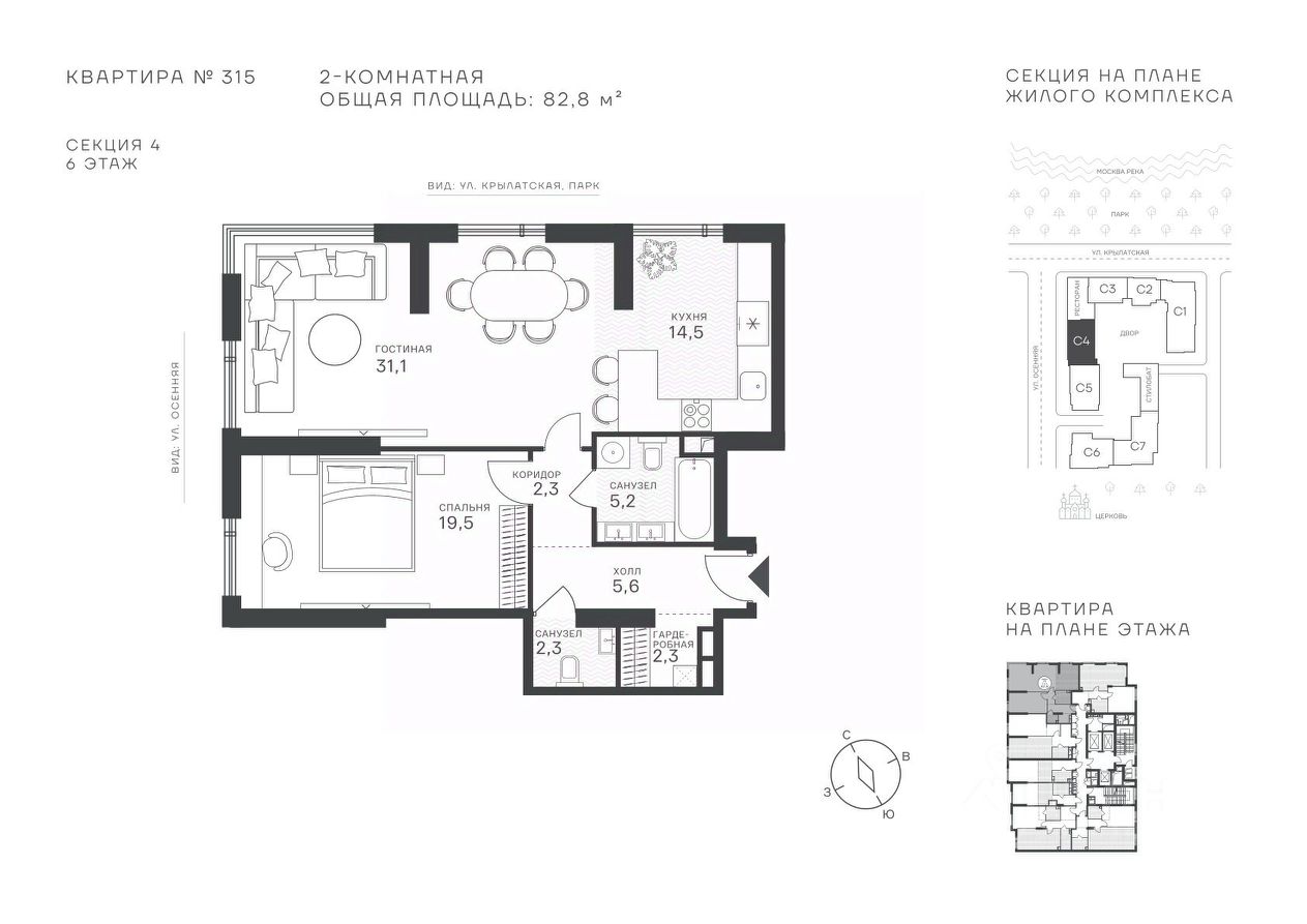 82 м² · Этаж 6 из 43