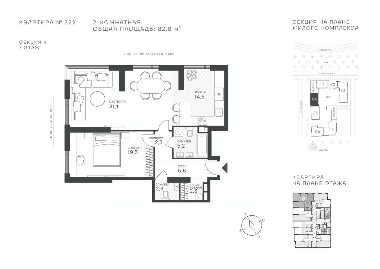82 м² · Этаж 7 из 43
