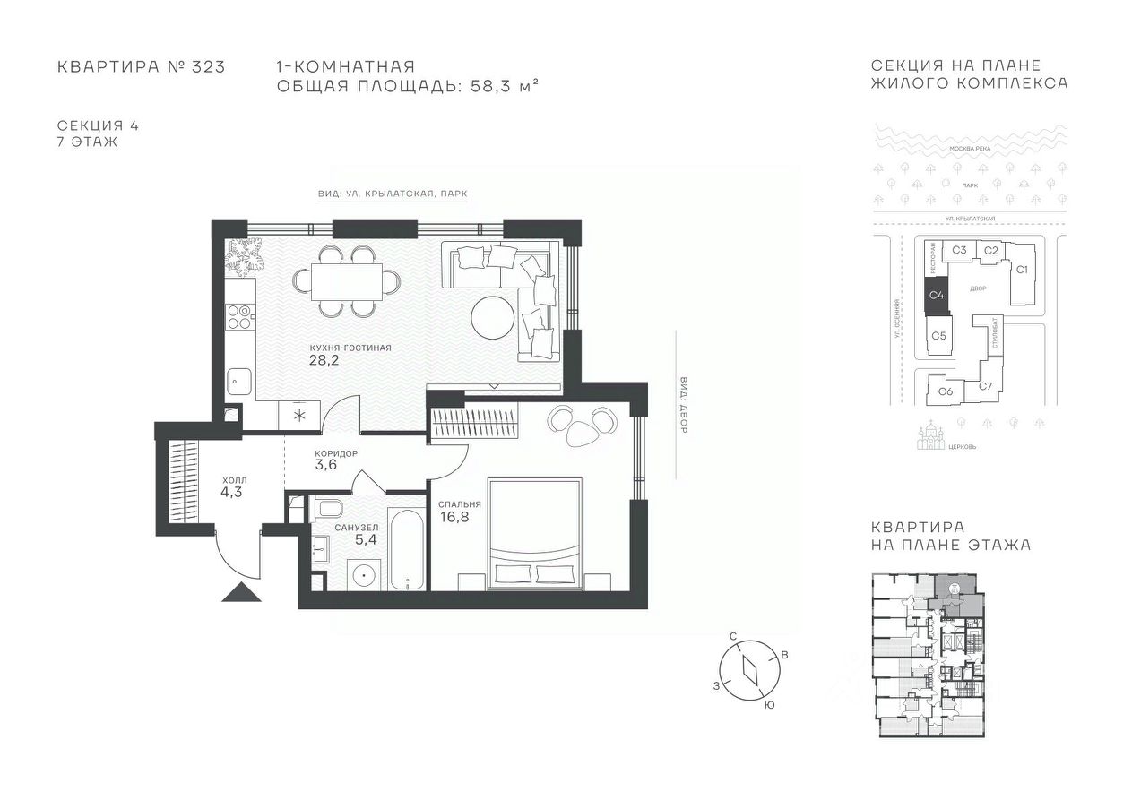 58 м² · Этаж 7 из 43