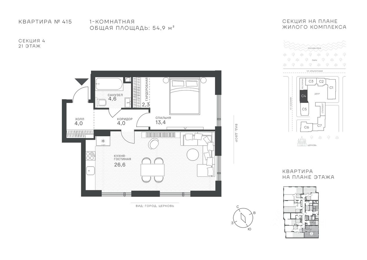 54 м² · Этаж 21 из 43