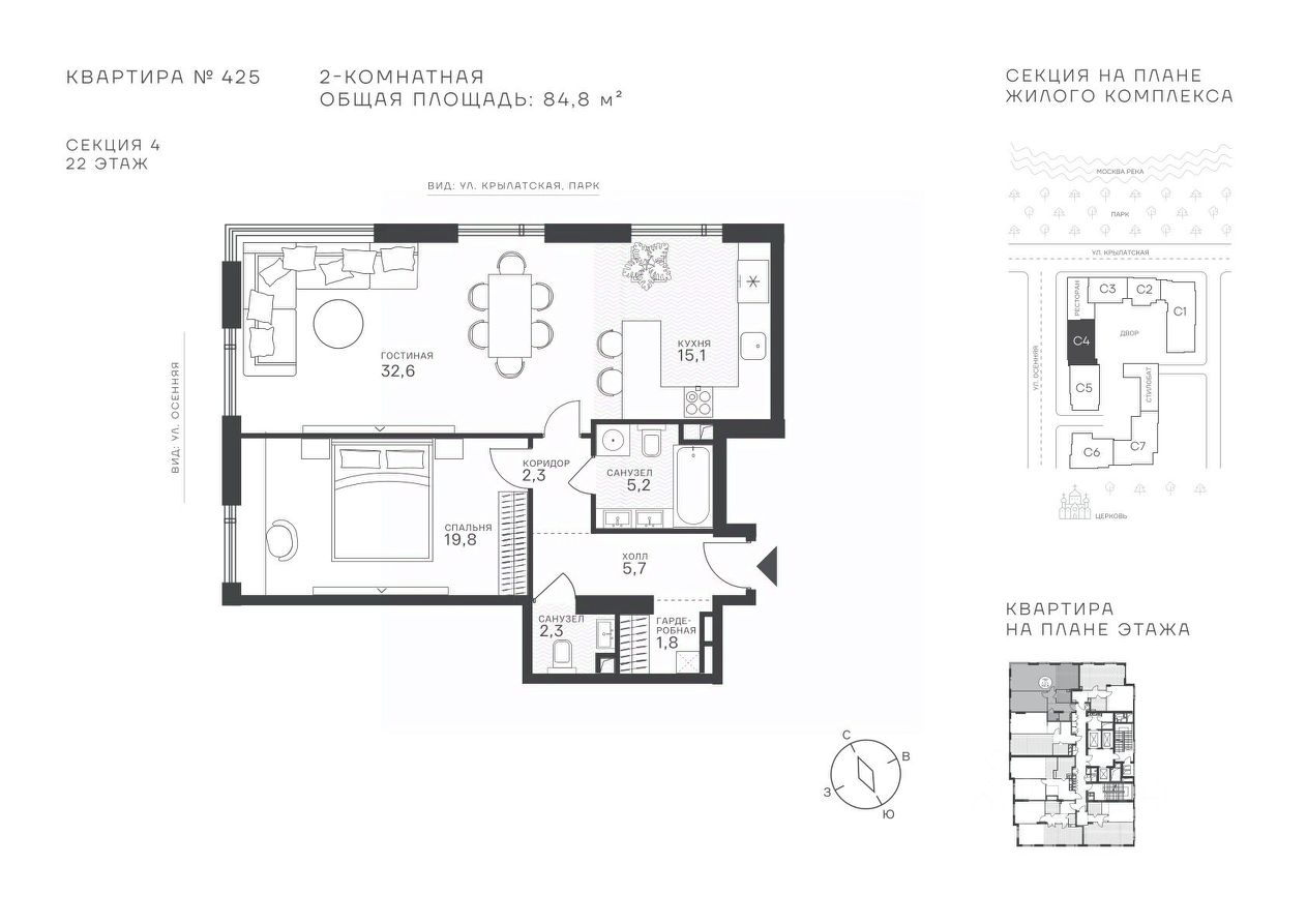 84 м² · Этаж 22 из 43