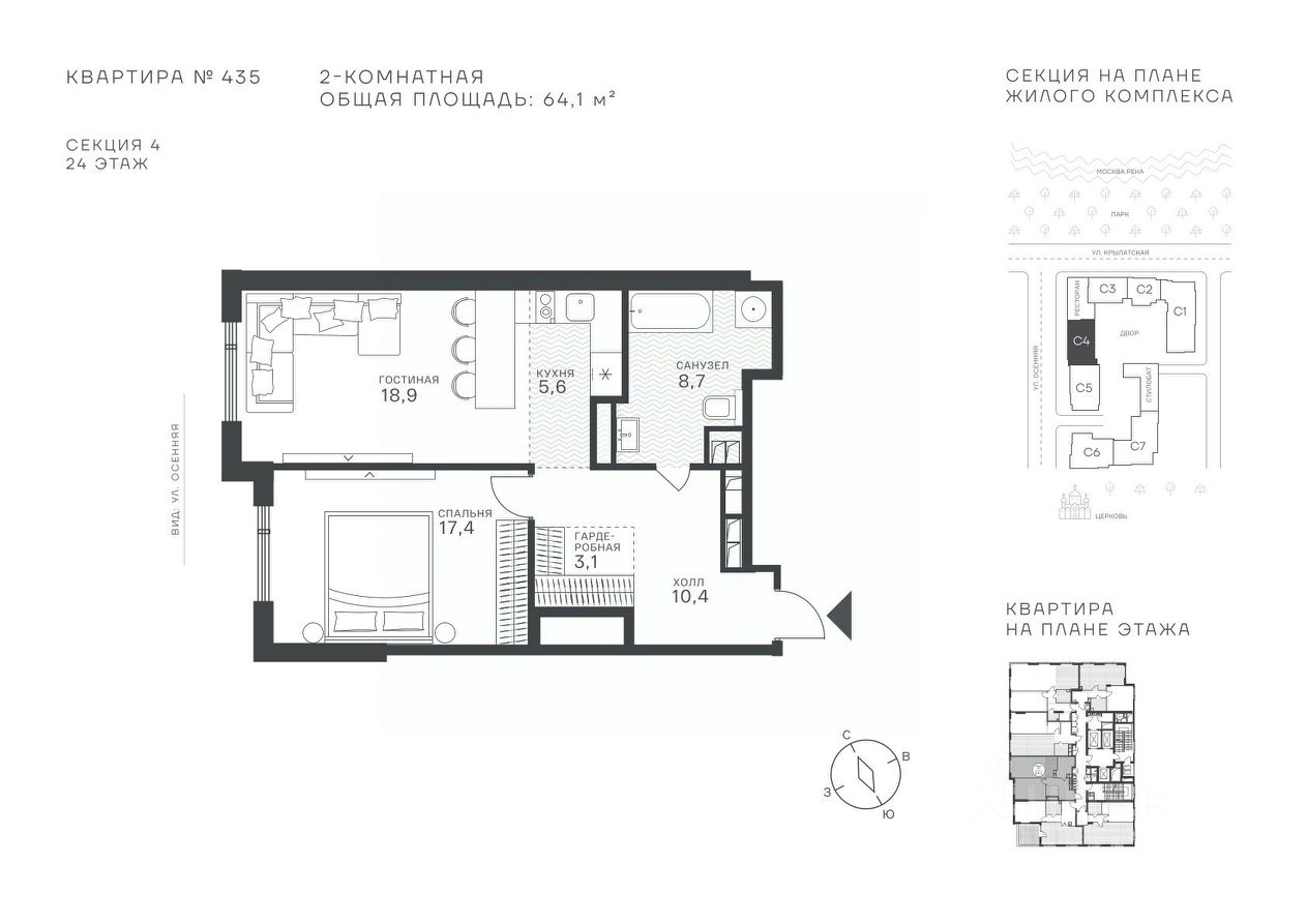 64 м² · Этаж 24 из 43