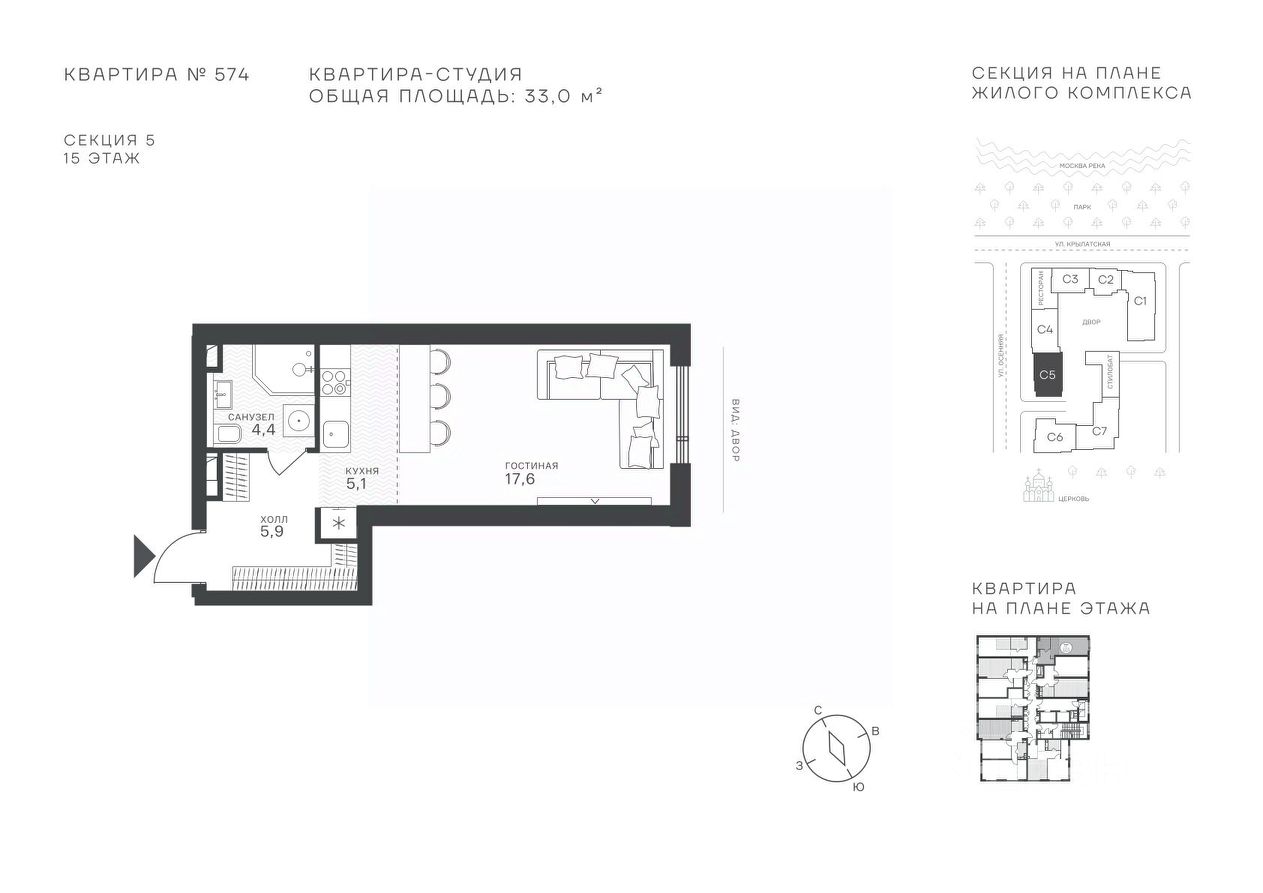 33 м² · Этаж 15 из 43