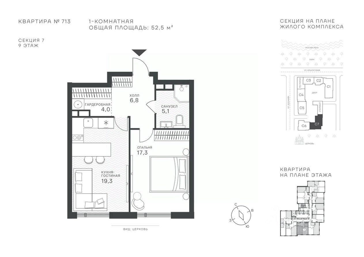 52 м² · Этаж 9 из 43