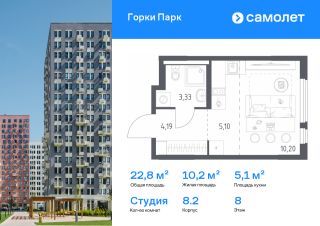 Строим кварталы для жизни с заботой о будущем. Предлагается квартира студия комфорт-класса 22,82 кв.м в корпусе 8.2 на 3 этаже, в ЖК ''Горки Парк''Квартира с чистовой отделкой. Доступность дополнительных опций уточняйте у застройщика.Приобрести квартиру возможно по специальным акциям от застройщика, с текущими условиями акций можно ознакомиться в блоке ''Акций''.Цена динамическая и может отличаться, уточняйте актуальность у застройщика.Уединенный жилой комплекс, где хочется остаться. До МКАДа всего 10 минут на авто, а прямо рядом с домами есть лес — идеально для прогулок, занятий спортом и медитаций. Фасады 1117-этажных корпусов дополняют яркие вставки — каждый дом особенный. На территории проекта появятся ФОК и поликлиника, детские сады и школы. Наслаждаться счастливой жизнью в квартале можно уже сейчас — здесь есть готовые дома, но при этом появляются и новые корпуса. ''Горки Парк'' — это: 1. 10 минут на машине до МКАДа 2. 20 минут на машине до метро ''Домодедовская'' и 18 минут — до аэропорта Домодедово3. Пешеходные бульвары и пространства для отдыха4. Выход в лесопарк с благоустроенными экотропами5. Приватные дворы без машин 6. Экомаршрут в Коробовском лесопарке рядом с домом, который соединит кварталы: ''Пригород Лесное'', ''Горки Парк'' и ''Богдановский Лес''7. Запланировано 3 школы и 6 детских садов8. Уже построили детский сад и школу со спортивным ядром, где смогут тренироваться жители квартала9. Поликлиника и спорткомплекс внутри проекта10. Магазины и кофейни на первых этажах11. Игровые площадки и воркаут-зона 12. Прогулочная зона рядом с кварталом13. Спортивно-игровой кластер14. Площадки для занятий йогой и игры в пинг-понг — в части дворов15. Рабочий остров и площадка для отдыха — в части дворов16. Веревочный панда-парк — в будущем 17. Площадка для выгула собак18. Балконы с панорамным остеклением19. Увеличенные окна в квартирах20. Входы на уровне земли21. Места для хранения велосипедов и колясок
