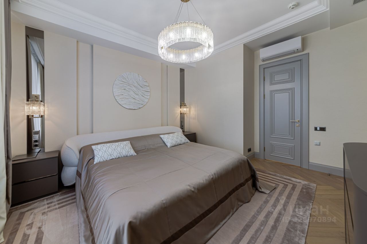 Лот: 115189. На продажу предлагается просторная светлая пятикомнатна квартира, площадью 219 кв.м. в престижном ЖК ''Триумф Палас''. Планировка: гостиная, кухня-столовая, три спальни, одна из которых со своей гардеробной, кабинет, три совмещенных санузла, прихожая. Высота потолков - 3,15 м. В квартире выполнен евроремонт. Огороженная и охраняемая территория. Видеонаблюдение. Консьерж-сервис. На территории комплекса гостевой наземный паркинг и подземный паркинг с мойкой. В комплексе предусмотрена собственная инфраструктура: новый фитнес-клуб World-Class с бассейном и СПА-зоной, салоны красоты, кафе, рестораны, клиники, магазин ВкусВилл, Азбука Вкуса, детская и спортивная площадка. В шаговой доступности ТРЦ ''Авиапарк'', парк Ходынское поле, Чапаевский парк и парк Березовой Рощи. Участник ассоциации AREA.