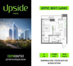 Продаётся студия площадью 28 кв.м на 46 этаже 55 этажного корпуса Эльбрус в квартале небоскребов ''Upside Towers''. В квартире отделка White-box, c видом на БЦ Останкино, ботанический сад. Номер квартиры А4602.Upside Towers - технологичный квартал строится в динамично развивающемся Бутырском районе, в 3 мин. от метро, в 5 мин. от ТТК. На территории 7 га возводится 5 высотных башен от 19 до 58 этажей, названных в честь главных вершин земли. Квартиры с панорамными окнами в пол, высокими потолками и современными инженерными решениями. Благоустроенная зеленая территория включает: приватные дворы, природный комплекс, прогулочный бульвар, ландшафтный парк 2,5 га с сенсорным садом и многофункциональными игровыми и спортивными площадками. Большое внимание в проекте уделяется созданию социальной инфраструктуры. Более 2000 кв.м. отдано под Upside club закрытый клуб, уникальное пространство для общения и развития жителей квартала, включая SKY SPA Relax на 47 этаже башни ''Атлас'' расслабляющей атмосферой, джакузи, сауной, залами для релаксации и йоги доступное жителям Upside Towers, всесезонное барбекю-патио, лаундж зону с камином и роялем, многофункциональные игровые пространства, домашний кинотеатр, коворкинг и переговорные. В башнях откроются смотровые террасы для резидентов с панорамными видами на город, парки, Останкинскую башню, ВДНХ, Ботанический сад и Москву-Сити. В рамках проекта строится государственная школа и детский сад, разместится более 15 000 кв.м. коммерческой инфраструктуры. Насыщенная социальная инфраструктура формирует множество сценариев для жизни на территории квартала. В Upside Towers применяются лучшие технологии и практики, чтобы обеспечить высшее качество жизни: Воздух, не уступающий по качеству горному, обеспечит приточно-вытяжная вентиляция. Пятиступенчатая очистка воды с сохранением полезных минералов. Центральное кондиционирование. Внутрипольные конвекторы с естественной конвекцией. Современные системы безопасности и мониторинга микроклимата. Высокоскоростной интернет на всей территории, в квартирах и паркинге за счет усиления GSM-связи всех ведущих операторов.Все места в подземном паркинге оборудованы зарядками для электрокаров.Бутырский район непрерывно развивается и готовится стать новым современным деловым районом Москвы. В рамках программы ''Индустриальные кварталы'' комплексного развития территории Огородного проезда будут построены современные образовательные и спортивные учреждения, торговые центры, кафе, банки, общественно-деловые здания и другие объекты.В пешей доступности работают школы, детские сады, поликлиники, аптеки, супермаркеты и многое другое. Рядом находится несколько крупных зелёных зон для спокойного отдыха: Парк Останкино, ВДНХ, Парк Сокольники, Гончаровский парк, в 15 минутах пешком располагаются знаменитые арт-пространства - дизайн-завод Flacon и ''Хлебозавод''. Время в пути на автомобиле до центра Москвы 15 минут. (Застройщик ООО ''СЗ ''К-Девелопмент'')