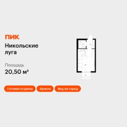 Продаётся квартира-студия площадью 20,5 кв.м на 6 этаже 17 этажного дома (Корпус 4, Секция 3) проекта ПИК Никольские луга. Светлый просторный подъезд на уровне земли, функциональная планировка, большие окна, c отделкой. Жилой квартал ''Никольские луга'' расположен на юго-западе Москвы, в 17 минутах пешком от МЦД ''Щербинка''. Дорога на автомобиле до МКАД займёт 20 минут, а до Варшавского шоссе — всего 5 минут. Неподалёку находятся два больших парка — Бутовский лесопарк и парк ''Южное Бутово''.''Никольские луга'' — большой проект, который отражает концепцию ''город в городе''. Он отличается современной архитектурой, а корпуса будут облицованы плиткой тёплых натуральных оттенков. Благодаря витражному остеклению на входе, в просторные лобби будет попадать ещё больше света. В проекте предусмотрены квартиры с балконами, в том числе угловыми с панорамным остеклением.Рядом с домами будет всё необходимое для комфортной жизни. Специально для проекта мы построим три детских сада, две школы и спортивный комплекс. Пруд на территории квартала будет благоустроен, а рядом с ним появятся места для отдыха у воды.На первых этажах домов откроются магазины и необходимые сервисы, в каждом дворе разместятся детские и спортивные площадки, а через весь район протянется несколько пешеходных бульваров. Артикул 963263 (Застройщик ООО ''СПЕЦИАЛИЗИРОВАННЫЙ ЗАСТРОЙЩИК ''ТЕРИБЕРСКИЙ БЕРЕГ'')