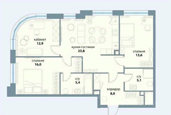 86 м² · Этаж 23 из 33