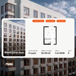 Продаётся квартира-студия площадью 25,3 кв.м на 5 этаже 25 этажного дома (Корпус 16.2, Секция 5) проекта ПИК Белая Дача парк. Светлый просторный подъезд на уровне земли, функциональная планировка, большие окна, c отделкой. ''Белая Дача парк'' — новый проект в Московской области, в городе Котельники. Квартал расположен в 2 километрах от МКАД и в 7 минутах на автомобиле от метро ''Котельники''. Уже сейчас вы можете приобрести квартиры с отделкой в готовых и строящихся корпусах. На территории квартала будут построены 22 дома, две школы, поликлиники и пять детских садов. Один из центральных элементов проекта — широкий пешеходный бульвар, где мы создали пространства для спорта, прогулок и отдыха. Яркой точкой притяжения стал PlayHub ''Ферма'' — масштабная игровая зона с домом-мельницей, искусственным ручьём и развивающими элементами для детей. В 2024 году PlayHub стал победителем ''Всероссийской премии лучших проектов создания игровой среды'' и получил награду ''Лучшая реализация игровой площадки среди девелоперских проектов''.Рядом с кварталом много магазинов и развлекательных центров: ''Outlet Village Белая дача'', ''МЕГА Белая дача'', гипермаркет ''Глобус'', центр оптовой торговли Selgros. До Люберецких карьеров можно добраться на машине за 9 минут, а до парка ''Кузьминки'' — за полчаса. Артикул 1008337 (Застройщик АО ''СЗ ''Новый Горизонт'')