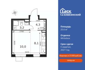 Семейная ипотека без наценки со скидками до 21% до конца августа!Прямая продажа от застройщика! Жилой Комплекс класса Комфорт.Продаётся студия номер 572 общей площадью 21.3 кв.м на 7-м этаже 17 этажного дома. Отделка Whitebox.Особенности:- Квартира доступна к покупке в Trade-In.- Линейная планировка - максимальная функциональность и удобство.- Увеличенное число окон- Стандартное количество квартир на этаже - оптимальный выбор для городской жизни.- Ниша под шкаф - компактное и удобное место для вещей.- Вид из окна: двор- Купи сейчас - плати потом!Квартира с предчистовой отделкой (White box). Вам не придётся заниматься черновыми трудоёмкими работами, а чистовую отделку и дизайн сделаете по своему вкусу.Расположение комплекса: Квартал класса комфорт плюс, где современное городское пространство граничит с удивительной природой вокруг. 1-й Химкинский расположен на территории в 102 га и органично вписан в природное окружение Химкинского леса и канала им. Москвы. В проекте предусмотрена богатая коммерческая инфраструктура с собственным торговым центром, общеобразовательные учреждения и социальные объекты. Изюминкой жилого комплекса будут спортивно-оздоровительный комплекс с термами и SPA и семейный парк развлечений.Транспортная доступность:ЖК ''1-й Химкинский'' дает возможность выбрать любой способ передвижения как до города, так и до самых разных объектов, которые могут представлять интерес для его жителей. Не важно, какой способ передвижения вы предпочитаете, успевать всегда и везде можно вне зависимости от выбора транспорта. - 8 мин. пешком (800 м) до остановки ''Золотая Арка''- 10 мин пешком (1 км) до остановки ''Поворот на Ивакино''Внутренняя инфраструктура:- Безопасность: закрытые дворы без машин, безбарьерная среда и сквозные подъезды, камеры на детских площадках с возможностью трансляции на смартфоне- Идеальный отдых в кругу семьи: семейный парк развлечений на территории, торговый центр (2-х этажный) общей площадью более 8 тыс. кв. м с фудкортом- Образование: 3 детских сада и современная муниципальная школа на 2450 мест- Спортивная среда: закольцованный веломаршрут с навигацией, спортивный комплекс с термами, закрытый тренажерный зал и зоны ворк-аута- Социальные объекты: поликлиника со станцией скорой помощи, пожарное депо- Подземный паркинг и кладовые помещения на -1 этаже, станция техобслуживания и автомойка на территории.