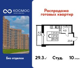 Продаётся студия в сданном доме (Корпус 1), срок сдачи: 2-кв. 2025, общей площадью 29.25 кв.м., на 10 этаже. ЖК ''Космос'' - новое место для жизни, в котором сочетаются отличная экология, удобное расположение, креативные решения архитектуры и функциональные планировки квартир. Строительство жилого комплекса ведётся при проектном финансировании Сбербанка. ЖК ''Космос'' расположен в микрорайоне Авиационный (Домодедово), в 24 километрах от МКАД по Каширскому шоссе.Проект будет состоять из 7 корпусов высотой 12 этажей. На первых этажах домов запланировано открытие необходимых для жителей объектов торговой и социальной инфраструктуры, в том числе магазинов, кафе, медицинского центра. В микрорайоне Авиационный также есть всё необходимое для комфортной жизни - здесь находятся детские сады, школы, высшие учебные заведения, магазины, поликлиники и медицинские центры, спортивный клуб, ТЦ ''Торговый город''. Помимо этого, жители ЖК ''Космос'' смогут пользоваться развитой инфраструктурой г.о. Домодедово - до него можно добраться за 20 минут на автомобиле или электричке.Одна из особенностей ЖК ''Космос'' - отличное экологическое состояние локации. В 10 минутах ходьбы от комплекса находится благоустроенный парк ''Взлёт'' с красивым прудом Лесным, здесь планируется дальнейшее благоустройство территории. Рядом с ''Космосом'', на площади Гагарина, будут проходить городские мероприятия.Проект отличается удобной транспортной доступностью - до МКАД можно добраться за 20-25 минут. Около жилого комплекса находятся остановки общественного транспорта, в пешей доступности - ж/д станция ''Авиационная'' Павелецкого направления.На придомовой территории ЖК ''Космос'' предусмотрено устройство парковочных мест численностью 544 машино-места, в том числе для маломобильных групп населения.