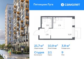 Строим кварталы для жизни с заботой о будущем. Предлагается квартира студия комфорт-класса 21,73 кв.м в корпусе 2.1 на 9 этаже, в ЖК ''Пятницкие Луга'' Квартира с чистовой отделкой. Доступность дополнительных опций уточняйте у застройщика.Приобрести квартиру возможно по специальным акциям от застройщика, с текущими условиями акций можно ознакомиться в блоке ''Акций''.Цена динамическая и может отличаться, уточняйте актуальность у застройщика.Жить в проекте ''Пятницкие Луга'' — значит просыпаться с видом на лес или реку. До Пятницкого шоссе — 5 минут на авто, до метро ''Пятницкое шоссе'' — 12 минут. В 2025 году появится тоннель с выездом на Путилковское шоссе. Рядом лесопарки и усадьба. На территории комплекса появятся 4 детских сада, 2 школы и поликлиника. Во дворе — сквер, внутренний сад, плейхаб и спортхаб. Квартиры с отделкой. Доступна улучшенная отделка, мебель и декор.