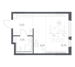 Продаётся студия в сданном доме (Пятиречье, 1), срок сдачи: IV-кв. 2023, общей площадью 34.48 кв.м., на 2 этаже. Расположение, транспортная доступность Жилой комплекс эконом-класса ''Пятиречье'' строится компанией ''Пятиречье'' на участке в 19 га между н/п Деденево и Целеево (40 км от МКАД) по индивидуальному архитектурному проекту. Комплекс будет состоять из 13 12-17 этажных корпусов и общественных зданий. К последним относятся детский сад, школа, торгово-развлекательный и деловой центры. Строительство ЖК ''Пятиречье'' разбито на семь очередей, в первую из которых войдет трехсекционный корпус 4 на 228 квартир с подземным паркингом на 122 автомобиля. Далее будут строиться еще три жилых здания и детсад. Последняя очередь строительства - многофункциональный центр. В пяти минутах пешком от комплекса находится станция пригородных поездов Турист. Кроме того, от Савеловского вокзала сюда прибывают электрички на Дмитров, Талдом, Савелово. Время в пути - около 1 часа 10 минут. Также от станции метрополитена ''Алтуфьево'' курсируют автобусы на Дмитров (примерно 20 рейсов в день). Ближайшие автомагистрали - Дмитровское шоссе (А104), а также ''Целеево-Парамоново-Дъяково''. К ЖК ''Пятиречье'' есть два подъезда, которые не пересекают железную дорогу. До города Дмитров от комплекса 12 км. До Дмитрова можно доехать на электричке (15 минут в пути) либо на машине по Дмитровскому шоссе (через Деденево до этой трассы 1,5 км). Предусмотренная планом Центральная кольцевая дорога пройдет примерно в 4,5 км отсюда. До Шереметьево от железнодорожной станции Лобня ходят маршрутки и автобусы. Инфраструктура В микрорайоне ''Пятиречье'' построят следующие социальные и торговые объекты: детский сад на 280 малышей с бассейном, спортивным залом, площадками для игр и активного времяпрепровождения. Кроме того, здесь появятся: общеобразовательная школа на 880 мест (будет сдана в четвертой очереди), торгово-развлекательный комплекс (магазины, офисы, кинотеатр, фитнес-центр, парковка), паркинги (наземные и подземные) - примерно 2850 машиномест, различные объекты на цокольных и первых уровнях корпусов, во встроенно-пристроенных помещениях - магазины, салоны красоты, парикмахерские, прачечные, химчистки, почтовое отделение. Территория ЖК ''Пятиречье'' будет озеленена (5,5 га) и освещена, здесь предусмотрены фонтаны, асфальтирование проездов, мощение дорожек и площадок, детские и спортплощадки, искусственное озеро с оборудованной набережной и пляжем. В трех километрах от новостройки находится Центр подготовки сборных команд страны по зимним видам спорта (одну из частей ЖК ''Пятиречье'' отведут для проживания спортсменов и персонала центра). Кроме центра подготовки, поблизости от микрорайона расположены: спортивно-развлекательный парк, горнолыжный парк, горнолыжный клуб, спортивный курорт, гольф- и поло-клуб, международный санно-бобслейный комплекс, парк ''Экстрим'', река Икша с притоками, канал им. Москвы, Яхромское водохранилище, Деденевское лесничество. Район богат на исторические до