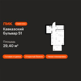 Продаётся квартира-студия площадью 29,4 кв.м на 16 этаже 23 этажного дома (Корпус 3.1, Секция 1) проекта ПИК Кавказский бульвар 51. Светлый просторный подъезд на уровне земли, функциональная планировка, большие окна, c отделкой. ''Кавказский бульвар 51'' — современный жилой квартал в районе Царицыно. Проект частично реализован. ''Кавказский бульвар 51'' находится в районе Царицыно, недалеко от одноимённого музея-заповедника. До метро ''Кантемировская'' — 17 минут пешком. За 20 можно дойти до станции ''Чертаново''. В 10 минутах на машине — МКАД, в 11 минутах — Варшавское шоссе, а в 16 минутах — ТТК. В проекте жилые дома высотой от 5 до 33 этажей, детский сад и школа. На первых этажах доступны магазины, кафе, салоны красоты и другие сервисы — чтобы купить кофе и свежий хлеб к завтраку, можно просто спуститься на лифте. В уютных дворах-парках есть места для отдыха и детские площадки. Для прогулок на свежем воздухе мы построим для жителей широкий пешеходный бульвар. В районе вокруг ''Кавказского бульвара 51'' есть всё для комфортной жизни: детские сады, школы, поликлиники, магазины и торговые центры. Девять минут на машине — и вы у музея-заповедника ''Царицыно'', где можно гулять среди исторических построек, лежать на траве под тенью деревьев или заниматься спортом на специальных площадках. Есть парки и поближе: до Аршиновского можно дойти за 8 минут, а до парка ''Сосенки'' — за 13 минут. Артикул 1009491 (Застройщик АО ''СПЕЦИАЛИЗИРОВАННЫЙ ЗАСТРОЙЩИК ''ТОРГОВЫЙ ДОМ СПУТНИК'')