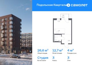 Строим кварталы для жизни с заботой о будущем. Предлагается квартира студия комфорт-класса 26,57 кв.м в корпусе 3 на 3 этаже, в ЖК ''Подольские Кварталы''Квартира без отделки. Доступность опции ''отделка'' и возможность комплектации мебелью и декором уточняйте у застройщика.Приобрести квартиру возможно по специальным акциям от застройщика, с текущими условиями акций можно ознакомиться в блоке ''Акций''.Цена динамическая и может отличаться, уточняйте актуальность у застройщика.''Подольские кварталы'' — жилой комплекс в Новой Москве, рядом с Дубровицким лесом и рекой Десной. До станции МЦД-2 ''Остафьево'' - 5 минут на общественном транспорте, до станции МЦД-2 ''Силикатная'' — 8 минут на машине.Рядом — музей-заповедник ''Остафьево'', усадьбы Плещеево и Дубровицы.В квартале будут детский сад на 200 мест и учебно-воспитательный комплекс на 1 500 мест, в который войдут школа и детский сад. Первые этажи жилых корпусов займут квартиры, кафе, магазины и салоны красоты.Дворы-парки будут радовать жителей цветением и зеленью: здесь высадят липы, сосны, ели, клены и сирень. Плэйхаб станет местом встреч всех любителей активного отдыха: застройщик оборудует зоны тренажеров и воркаута, площадки для игр в настольный теннис, мяч, шахматы. Также появятся современные игровые площадки для детей. Для автовладельцев предусмотрен многоуровневый паркинг.В проекте — монолитные дома высотой от 9 до 12 этажей. Теплые оттенки фасадов соответствуют дизайн-коду ''Янтарный берег''. Фасады облицованы ложковой кирпичной кладкой.