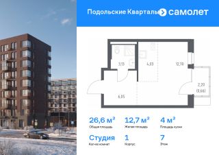 Строим кварталы для жизни с заботой о будущем. Предлагается квартира студия комфорт-класса 26,57 кв.м в корпусе 1 на 7 этаже, в ЖК ''Подольские Кварталы''Квартира с чистовой отделкой. Доступность дополнительных опций уточняйте у застройщика.Приобрести квартиру возможно по специальным акциям от застройщика, с текущими условиями акций можно ознакомиться в блоке ''Акций''.Цена динамическая и может отличаться, уточняйте актуальность у застройщика.''Подольские кварталы'' — жилой комплекс в Новой Москве, рядом с Дубровицким лесом и рекой Десной. До станции МЦД-2 ''Остафьево'' - 5 минут на общественном транспорте, до станции МЦД-2 ''Силикатная'' — 8 минут на машине.Рядом — музей-заповедник ''Остафьево'', усадьбы Плещеево и Дубровицы.В квартале будут детский сад на 200 мест и учебно-воспитательный комплекс на 1 500 мест, в который войдут школа и детский сад. Первые этажи жилых корпусов займут квартиры, кафе, магазины и салоны красоты.Дворы-парки будут радовать жителей цветением и зеленью: здесь высадят липы, сосны, ели, клены и сирень. Плэйхаб станет местом встреч всех любителей активного отдыха: застройщик оборудует зоны тренажеров и воркаута, площадки для игр в настольный теннис, мяч, шахматы. Также появятся современные игровые площадки для детей. Для автовладельцев предусмотрен многоуровневый паркинг.В проекте — монолитные дома высотой от 9 до 12 этажей. Теплые оттенки фасадов соответствуют дизайн-коду ''Янтарный берег''. Фасады облицованы ложковой кирпичной кладкой.