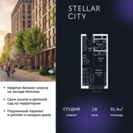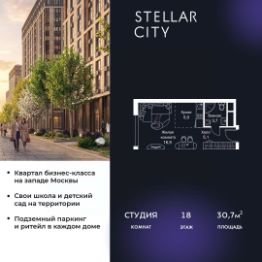 Продаётся квартира-студия площадью 28,9 кв.м на 5 этаже 28 этажного дома (Корпус 5.4, Секция 5) проекта ПИК Зелёный парк. Светлый просторный подъезд на уровне земли, функциональная планировка, большие окна, c отделкой. Большой квартал с оригинальной архитектурой в обжитом районе Зеленограда. От него до станции МЦД-3 ''Зеленоград-Крюково'' — 20 минут пешком, до Кутузовского шоссе можно доехать на машине за 3 минуты, а до Пятницкого шоссе — за 5 минут.Характер ''Зелёного парка'' отражён в архитектуре. Квартал состоит из уютных разноэтажных блоков с оригинальными акцентами. Цветовая палитра проекта спокойная и сдержанная: оттенки белого и коричневого сочетаются с пастельным розовым и мятным.В проекте запланированы также два детских сада, две школы и паркинг. На первых этажах откроются магазины, кафе и другие сервисы — чтобы купить кофе и свежий хлеб к завтраку, можно будет просто спуститься на лифте. В уютных дворах-парках появятся места для отдыха, детские площадки, кофейни и зоны отдыха.Рядом — Зеленоградский лес, Парк Победы и Михайловский пруд, где можно гулять и заниматься спортом. У жителей ''Зелёного парка'' будет возможность получить московскую прописку.Для любителей спорта в 10 минутах пешком от квартала — велодром с BMX-трассой, физкультурно-оздоровительный комплекс Горизонт, а также лыжероллерная трасса длиной около 3 км. Артикул 1031297 (Застройщик АО ''СПЕЦИАЛИЗИРОВАННЫЙ ЗАСТРОЙЩИК ''ЗЕЛЕНОГРАДСКИЙ'')
