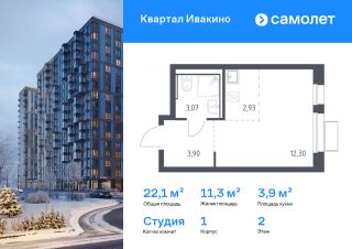 Строим кварталы для жизни с заботой о будущем. Предлагается квартира студия комфорт-класса 22,1 кв.м в корпусе 1 на 2 этаже, в ЖК ''Квартал Ивакино''Квартира с чистовой отделкой. Доступность дополнительных опций уточняйте у застройщика.Приобрести квартиру возможно по специальным акциям от застройщика, с текущими условиями акций можно ознакомиться в блоке ''Акций''.Цена динамическая и может отличаться, уточняйте актуальность у застройщика.Жилой комплекс ''Квартал Ивакино'' — уютный квартал в живописном окружении рек и заливов. До МКАДа 15 минут, до станций МЦД-1 и МЦД-3 — 1215 минут, метро ''Ховрино'' и ''Беломорская'' в 20 минутах. Всего 5 минут пешком — и вы на набережной канала им. Москвы. На территории комплекса — 2 школы, 3 детских сада, спортивный центр и поликлиника. В закрытом дворе-парке без машин есть спортивные и детские площадки. Квартиры с готовой или улучшенной отделкой.