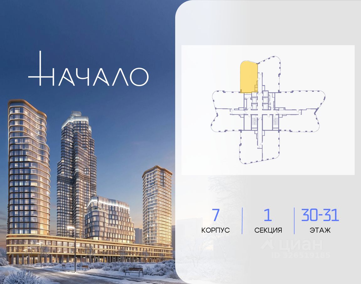 В престижном районе Пресня, на перекрестке делового и исторического центров Москвы, продается двухкомнатная квартира площадью 108.50 кв. м без отделки. Квартира находится на 30 этаже 48-этажного дома, в новом элитном жилом комплексе ''Начало'' от девелопера ''Донстрой''. Реализация проекта запланирована на 1 квартал 2030 года. Начало - футуристический дом на Пресне в нескольких минутах от Сити и Садового кольца. Проект по-настоящему космического масштаба, где есть все, чтобы раскрыть себя и свои возможности. Расположение Пресня - один из самых престижных районов Москвы. Жить здесь - значит стать частью истории столицы, быть в эпицентре деловой активности города и ощущать, как сама Вселенная вращается вокруг вас. - 5 минут пешком до Красногвардейских прудов, - 15 минут пешком до ст. метро ''Улица 1905 года'', - 6 минут на автомобиле до Садового кольца и небоскрёбов ''Москва-Сити'', - 12 минут на автомобиле до Кремля. Архитектура как путешествие Как росток пробивает скалу, как растет кристалл, как ракета устремляется ввысь - так формируется архитектурный образ этого дома. Точно выверенный баланс между футуристичными формами и функциональным содержанием дома выводит жизнь в нем на новую орбиту. Стеклянные фасады отражают небо и город, превращая здание в зеркало для окружающего ландшафта. Двор между небом и землёй Просторная территория двора с тремя тематическими зонами отдыха: ''Млечный путь'' - для детских игр и развлечений, ''Космический сад'' - для тихого отдыха и релакса, ''Метеоритный сад'' - для любителей спорта. Открытый променад - сквозной маршрут на крыше стилобата с зонами отдыха, занятий спортом, детских игр и совместной работы. Все площадки плавно связаны между собой прогулочной дорожкой. Теплая кольцевая галерея и мосты над пространством двора - все корпуса ''стыкуются'', точно модули космической станции. Главный центр притяжения В составе проекта возводится собственный комьюнити-центр, где создана идеальная атмосфера для любых начинаний: - Детский клуб для будущих покорителей Вселенной, - Коворкинги для решения задач планетарного и космического масштабов, - Переговорные для судьбоносных и просто важных встреч, - Лаунжи с атмосферой дзена и релакса, - Библиотека для спокойного чтения, - Кинотеатр для классики и блокбастеров. Территория комфорта и приватности Всё нужное рядом: - Современный образовательный центр со школой и детским садом - для ваших детей, - Фитнес-центр с бассейном - для релакса и борьбы со стрессом, - Ресторанная улица: кафе, рестораны, летние террасы - для деловых обедов и семейных ужинов, - Пекарня и минимаркет в доме - для ежедневных покупок, - Сквер у дома - для неспешных прогулок и спокойного отдыха, - Никаких такси на улице. Машина заберет вас прямо в подземном паркинге вашего корпуса.