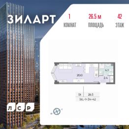 Продается квартира студия площадью 26.50 кв.м на 42 этаже 43 этажного монолитно-кирпичного дома в ЖК ''ЗИЛАРТ'' от Группа ЛСР. ЗИЛАРТ СПАРК — новый дом бизнес-класса в жилом квартале ''ЗИЛАРТ'' высотой 150 метров. Он сочетает в себе современную архитектуру, передовые технологии и восхитительные виды на ландшафтный парк ''Тюфелева Роща'' и бульвар Братьев Весниных. Близкое расположение к музейно-выставочному центру ''Коллекция'' и концертному залу создает вдохновляющую атмосферу места, где переплетаются жизнь и творчество. ЗИЛАРТ СПАРК расположен в престижном Даниловском районе. В пешей доступности находятся несколько станций метро: ''Тульская'', ''Автозаводская'', ''Технопарк'' и недавно открытая ''ЗИЛ'' Троицкой линии, с которой можно пересесть на одноименную станцию МЦК, а позже и на станцию ''ЗИЛ'' Бирюлевской линии (открытие запланировано на 2028 год).В пешей доступности есть вся необходимая инфраструктура: супермаркеты, салоны красоты, уютные кафе и рестораны, спортивные студии, места для досуга, отдыха и развлечений. На благоустроенной набережной Марка Шагала располагается действующий причал ''ЗИЛ''. Жилой комплекс даст возможность прогуляться по живописной набережной, просторному парку и бульвару. Любители здорового образа жизни и спортсмены оценят современные площадки для спортивных игр и фитнес-центр с бассейном. Молодые родители будут спокойны за настоящее и будущее детей благодаря современной образовательной среде. В ''ЗИЛАРТе'' расположена одна из самых больших школ России на 2,5 тысячи учеников.