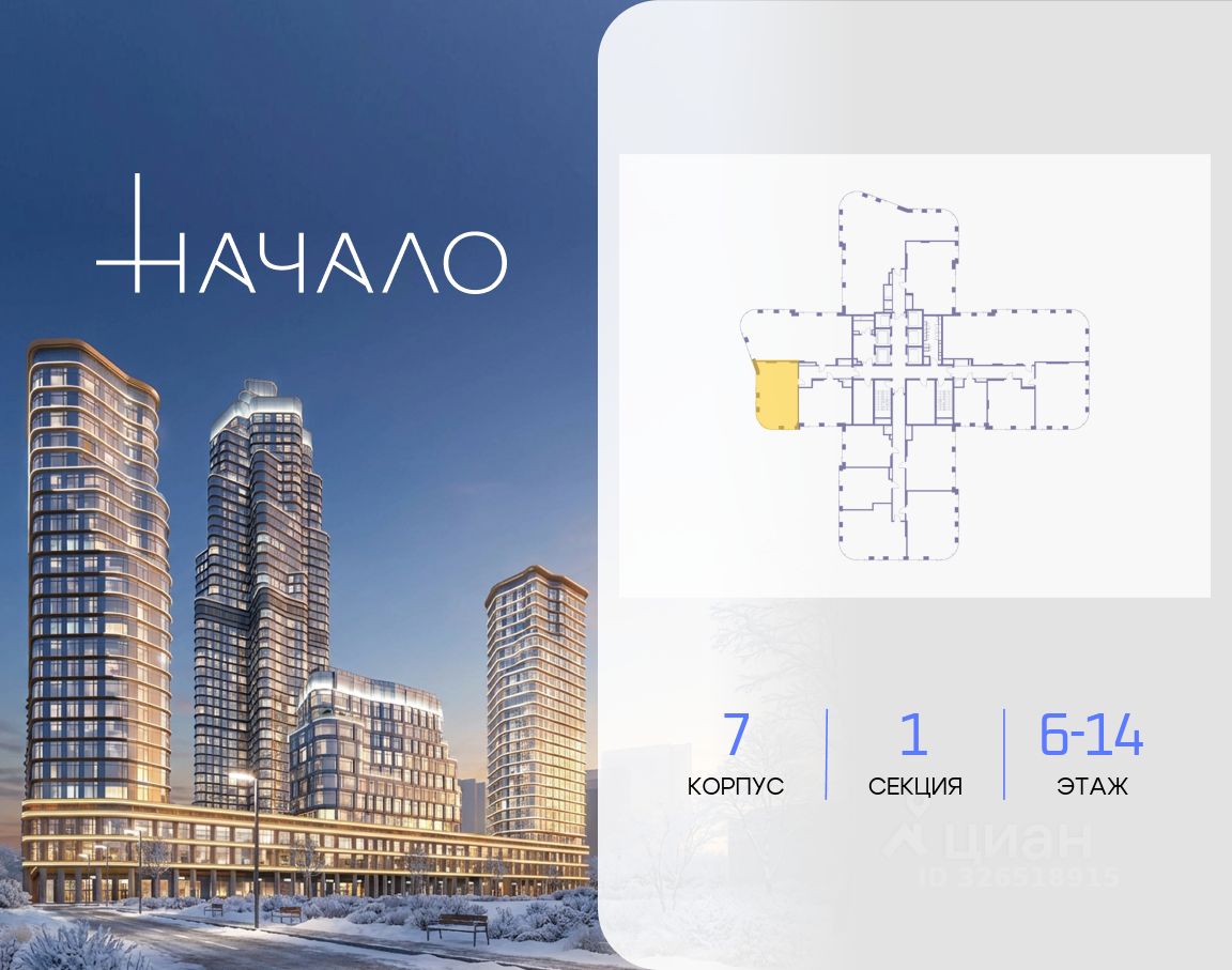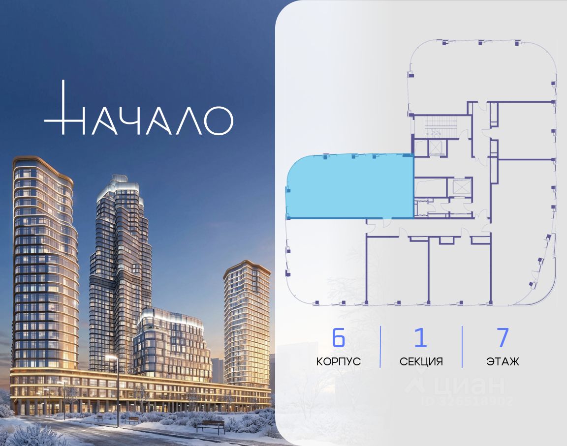В престижном районе Пресня, на перекрестке делового и исторического центров Москвы, продается двухкомнатная квартира площадью 85.10 кв. м без отделки. Квартира находится на 6 этаже 11-этажного дома, в новом элитном жилом комплексе ''Начало'' от девелопера ''Донстрой''. Реализация проекта запланирована на 1 квартал 2030 года. Начало - футуристический дом на Пресне в нескольких минутах от Сити и Садового кольца. Проект по-настоящему космического масштаба, где есть все, чтобы раскрыть себя и свои возможности. Расположение Пресня - один из самых престижных районов Москвы. Жить здесь - значит стать частью истории столицы, быть в эпицентре деловой активности города и ощущать, как сама Вселенная вращается вокруг вас. - 5 минут пешком до Красногвардейских прудов, - 15 минут пешком до ст. метро ''Улица 1905 года'', - 6 минут на автомобиле до Садового кольца и небоскрёбов ''Москва-Сити'', - 12 минут на автомобиле до Кремля. Архитектура как путешествие Как росток пробивает скалу, как растет кристалл, как ракета устремляется ввысь - так формируется архитектурный образ этого дома. Точно выверенный баланс между футуристичными формами и функциональным содержанием дома выводит жизнь в нем на новую орбиту. Стеклянные фасады отражают небо и город, превращая здание в зеркало для окружающего ландшафта. Двор между небом и землёй Просторная территория двора с тремя тематическими зонами отдыха: ''Млечный путь'' - для детских игр и развлечений, ''Космический сад'' - для тихого отдыха и релакса, ''Метеоритный сад'' - для любителей спорта. Открытый променад - сквозной маршрут на крыше стилобата с зонами отдыха, занятий спортом, детских игр и совместной работы. Все площадки плавно связаны между собой прогулочной дорожкой. Теплая кольцевая галерея и мосты над пространством двора - все корпуса ''стыкуются'', точно модули космической станции. Главный центр притяжения В составе проекта возводится собственный комьюнити-центр, где создана идеальная атмосфера для любых начинаний: - Детский клуб для будущих покорителей Вселенной, - Коворкинги для решения задач планетарного и космического масштабов, - Переговорные для судьбоносных и просто важных встреч, - Лаунжи с атмосферой дзена и релакса, - Библиотека для спокойного чтения, - Кинотеатр для классики и блокбастеров. Территория комфорта и приватности Всё нужное рядом: - Современный образовательный центр со школой и детским садом - для ваших детей, - Фитнес-центр с бассейном - для релакса и борьбы со стрессом, - Ресторанная улица: кафе, рестораны, летние террасы - для деловых обедов и семейных ужинов, - Пекарня и минимаркет в доме - для ежедневных покупок, - Сквер у дома - для неспешных прогулок и спокойного отдыха, - Никаких такси на улице. Машина заберет вас прямо в подземном паркинге вашего корпуса.