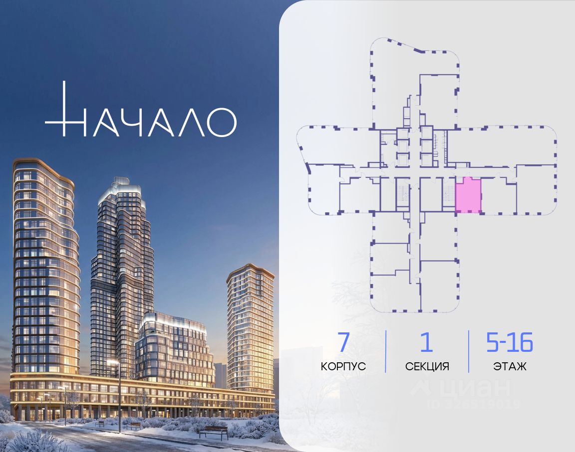 В престижном районе Пресня, на перекрестке делового и исторического центров Москвы, продается студия площадью 35.90 кв. м без отделки. Квартира находится на 16 этаже 48-этажного дома, в новом элитном жилом комплексе ''Начало'' от девелопера ''Донстрой''. Реализация проекта запланирована на 1 квартал 2030 года. Начало - футуристический дом на Пресне в нескольких минутах от Сити и Садового кольца. Проект по-настоящему космического масштаба, где есть все, чтобы раскрыть себя и свои возможности. Расположение Пресня - один из самых престижных районов Москвы. Жить здесь - значит стать частью истории столицы, быть в эпицентре деловой активности города и ощущать, как сама Вселенная вращается вокруг вас. - 5 минут пешком до Красногвардейских прудов, - 15 минут пешком до ст. метро ''Улица 1905 года'', - 6 минут на автомобиле до Садового кольца и небоскрёбов ''Москва-Сити'', - 12 минут на автомобиле до Кремля. Архитектура как путешествие Как росток пробивает скалу, как растет кристалл, как ракета устремляется ввысь - так формируется архитектурный образ этого дома. Точно выверенный баланс между футуристичными формами и функциональным содержанием дома выводит жизнь в нем на новую орбиту. Стеклянные фасады отражают небо и город, превращая здание в зеркало для окружающего ландшафта. Двор между небом и землёй Просторная территория двора с тремя тематическими зонами отдыха: ''Млечный путь'' - для детских игр и развлечений, ''Космический сад'' - для тихого отдыха и релакса, ''Метеоритный сад'' - для любителей спорта. Открытый променад - сквозной маршрут на крыше стилобата с зонами отдыха, занятий спортом, детских игр и совместной работы. Все площадки плавно связаны между собой прогулочной дорожкой. Теплая кольцевая галерея и мосты над пространством двора - все корпуса ''стыкуются'', точно модули космической станции. Главный центр притяжения В составе проекта возводится собственный комьюнити-центр, где создана идеальная атмосфера для любых начинаний: - Детский клуб для будущих покорителей Вселенной, - Коворкинги для решения задач планетарного и космического масштабов, - Переговорные для судьбоносных и просто важных встреч, - Лаунжи с атмосферой дзена и релакса, - Библиотека для спокойного чтения, - Кинотеатр для классики и блокбастеров. Территория комфорта и приватности Всё нужное рядом: - Современный образовательный центр со школой и детским садом - для ваших детей, - Фитнес-центр с бассейном - для релакса и борьбы со стрессом, - Ресторанная улица: кафе, рестораны, летние террасы - для деловых обедов и семейных ужинов, - Пекарня и минимаркет в доме - для ежедневных покупок, - Сквер у дома - для неспешных прогулок и спокойного отдыха, - Никаких такси на улице. Машина заберет вас прямо в подземном паркинге вашего корпуса.
