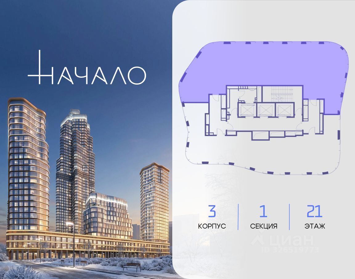В престижном районе Пресня, на перекрестке делового и исторического центров Москвы, продается трехкомнатная квартира площадью 143.20 кв. м без отделки. Квартира находится на 47 этаже 48-этажного дома, в новом элитном жилом комплексе ''Начало'' от девелопера ''Донстрой''. Реализация проекта запланирована на 1 квартал 2030 года. Начало - футуристический дом на Пресне в нескольких минутах от Сити и Садового кольца. Проект по-настоящему космического масштаба, где есть все, чтобы раскрыть себя и свои возможности. Расположение Пресня - один из самых престижных районов Москвы. Жить здесь - значит стать частью истории столицы, быть в эпицентре деловой активности города и ощущать, как сама Вселенная вращается вокруг вас. - 5 минут пешком до Красногвардейских прудов, - 15 минут пешком до ст. метро ''Улица 1905 года'', - 6 минут на автомобиле до Садового кольца и небоскрёбов ''Москва-Сити'', - 12 минут на автомобиле до Кремля. Архитектура как путешествие Как росток пробивает скалу, как растет кристалл, как ракета устремляется ввысь - так формируется архитектурный образ этого дома. Точно выверенный баланс между футуристичными формами и функциональным содержанием дома выводит жизнь в нем на новую орбиту. Стеклянные фасады отражают небо и город, превращая здание в зеркало для окружающего ландшафта. Двор между небом и землёй Просторная территория двора с тремя тематическими зонами отдыха: ''Млечный путь'' - для детских игр и развлечений, ''Космический сад'' - для тихого отдыха и релакса, ''Метеоритный сад'' - для любителей спорта. Открытый променад - сквозной маршрут на крыше стилобата с зонами отдыха, занятий спортом, детских игр и совместной работы. Все площадки плавно связаны между собой прогулочной дорожкой. Теплая кольцевая галерея и мосты над пространством двора - все корпуса ''стыкуются'', точно модули космической станции. Главный центр притяжения В составе проекта возводится собственный комьюнити-центр, где создана идеальная атмосфера для любых начинаний: - Детский клуб для будущих покорителей Вселенной, - Коворкинги для решения задач планетарного и космического масштабов, - Переговорные для судьбоносных и просто важных встреч, - Лаунжи с атмосферой дзена и релакса, - Библиотека для спокойного чтения, - Кинотеатр для классики и блокбастеров. Территория комфорта и приватности Всё нужное рядом: - Современный образовательный центр со школой и детским садом - для ваших детей, - Фитнес-центр с бассейном - для релакса и борьбы со стрессом, - Ресторанная улица: кафе, рестораны, летние террасы - для деловых обедов и семейных ужинов, - Пекарня и минимаркет в доме - для ежедневных покупок, - Сквер у дома - для неспешных прогулок и спокойного отдыха, - Никаких такси на улице. Машина заберет вас прямо в подземном паркинге вашего корпуса.