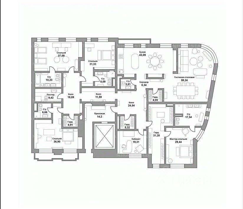 184 м² · Этаж 14 из 17