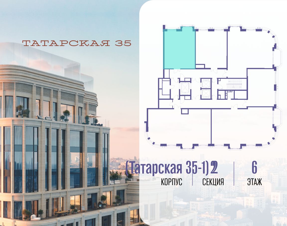 Продается просторная квартира площадью 54.80 м2 в жилом комплексе ТАТАРСКАЯ, 35. Квартира находится в 1 секции корпуса 3. Этаж 6-й из 24. Квартира без чистовой отделки, с просторной кухней 21.40 м2. Жилая площадь 14.60 м2. Высота потолка от 3.50. ТАТАРСКАЯ, 35 - новая архитектурная доминанта Замоскворечья, достопримечательность на фотопанорамах исторического центра Москвы. Элитный дом, созданный для тех, кто умеет смотреть далеко вперед, мыслить масштабно и воплощать собственный сценарий жизни. Вдохновляющие прогулки по променаду набережной, в уютных переулках, в парке ''Зарядье'', в Михайловском саду и Репинском сквере. Наслаждение высоким искусством в Третьяковской галерее, Доме Музыки, театральном музее им. А.А. Бахрушина, театре на Малой Ордынке. За окнами - Кремль, высотка на Котельнической, панорамы Замоскворечья и острова Балчуг, огни Садового кольца. Собственные спорт-румы, детская, репетиторская, бьюти-пространства, деловое пространство с коворкингом, переговорной и сигарной. Собственный трехуровневый фитнесс-центр с бассейном, тренажерным залом, сауной, хаммамом, массажным кабинетом. Площадь двора - 1,8 га, половина территории покрыта деревьями, кустарниками и лужайками. Дом расположен внутри Садового кольца - отсюда в считанные минуты можно добраться до важнейших мест столицы: достопримечательностей и парков, театров и ресторанов, деловых и административных центров. 7 минут до Кремля на автомобиле, 15 минут до Третьяковской галереи и 8 минут до Садового кольца пешком. Планировочные решения и визуализации предварительны, возможны изменения.