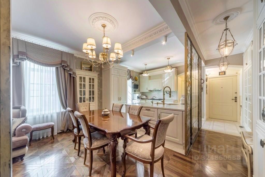 Угловая квартира с 4 спальнями общей площадью 108 м² в комплексе бизнес-класса ''Царская площадь''. Квартира с авторской отделкой расположена на 11 этаже в корпусе ''Романовский''. Интерьер в классическом стиле украшают декоративные молдинги, многоуровневые потолки и дизайнерские люстры. Продуманы различные сценарии освещения. Квартира полностью меблирована и укомплектована бытовой техникой. Функциональная планировка включает кухню-гостиную с обеденной зоной, 4 спальни, гардеробную и холл. Окна, ориентированные на две стороны света, открывают виды на благоустроенную территорию комплекса, город и ''ВТБ Арену''. Главное о доме. ''Царская площадь'' — квартал бизнес-класса в Беговом районе, где четыре корпуса соединены зелёными дворами и аллеями. Утро можно начать с тренировки в фитнес-клубе с бассейном или чашки кофе в ресторане ''Паризьен'' в историческом особняке на территории. Днём удобно поработать в одном из лаунжей или коворкингов, а дети могут провести время на игровых площадках и в образовательных центрах. Летом двор превращается в галерею прогулочных маршрутов с фонтаном и теннисными столами, а зимой — в каток. Вечером жители устраивают ужины на летних террасах или встречаются в тихих лаунж-зонах. Для машин предусмотрен двухуровневый паркинг с прямым доступом из лифтов. Главное о локации. Квартал стоит у Ленинградского проспекта, всего в пяти минутах от метро ''Динамо'' и в десяти от ''Белорусской''. Утро здесь часто начинается с пробежки в Петровском парке, а вечером можно заглянуть на матч или концерт в ''ВТБ Арене''. Для семей рядом школы 1550 и 1288, а малышей принимают детские сады Smile Fish и Sun School. В будни помогают супермаркеты и кафе на Ленинградке, а по выходным удобно кататься на велосипеде по аллеям парка ''Берёзовая роща'' или гулять по Центральному ипподрому. До центра дорога занимает всего четверть часа, а с Белорусского вокзала можно за полчаса доехать до Шереметьево на аэроэкспрессе. Комментарий эксперта. Меня зовут Валерий Лановой — брокер компании Whitewill. Я отвечаю за продажу этого лота. Свяжитесь со мной, чтобы получить расширенную презентацию, больше фотографий или договориться о просмотре. Могу провести экскурсию по локации и познакомить вас с этим домом. ID 316 492.