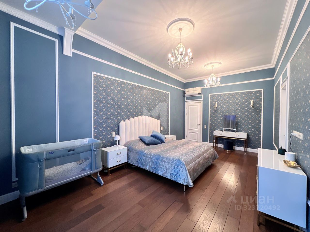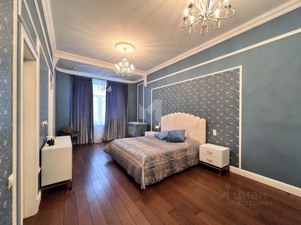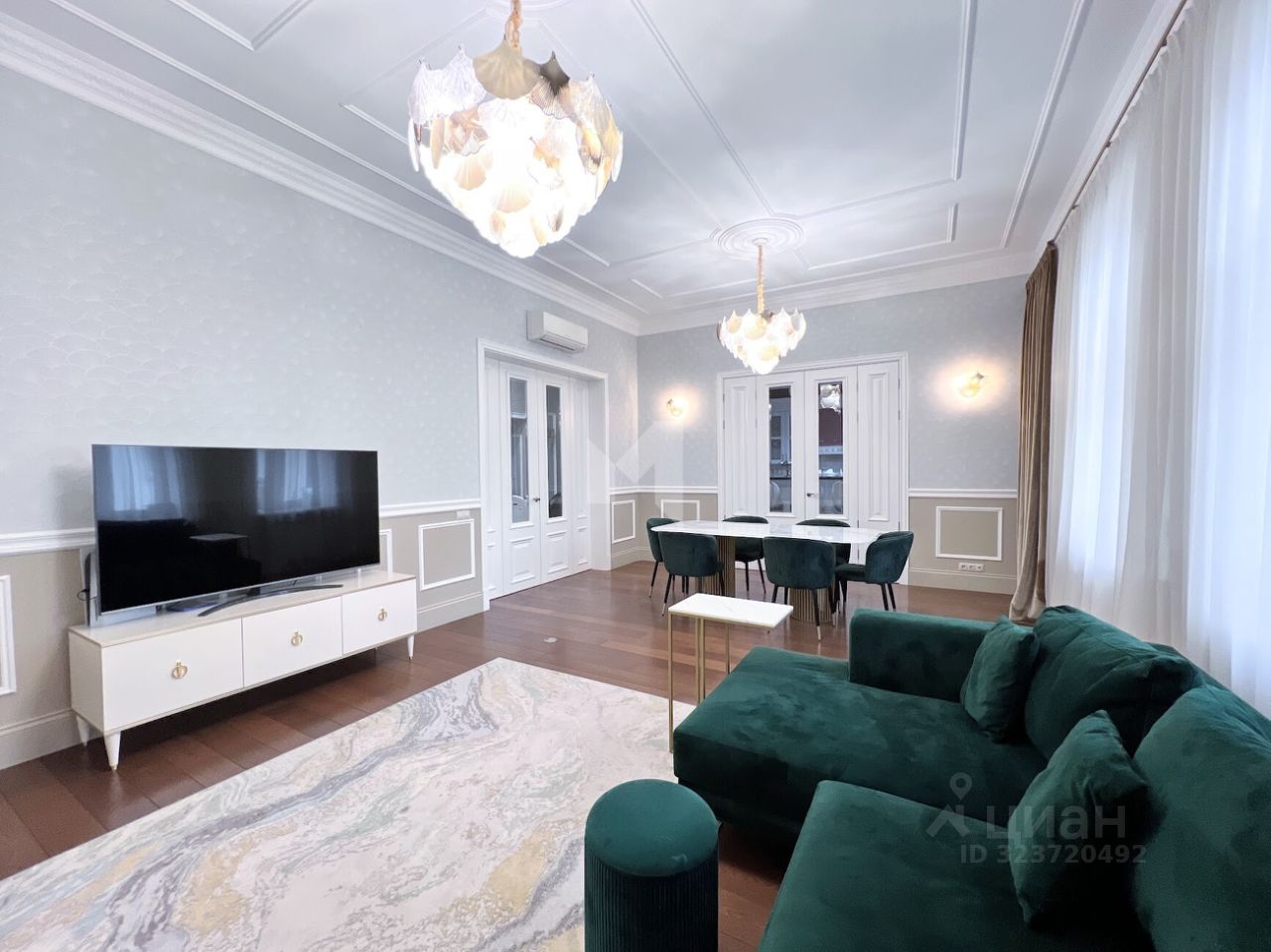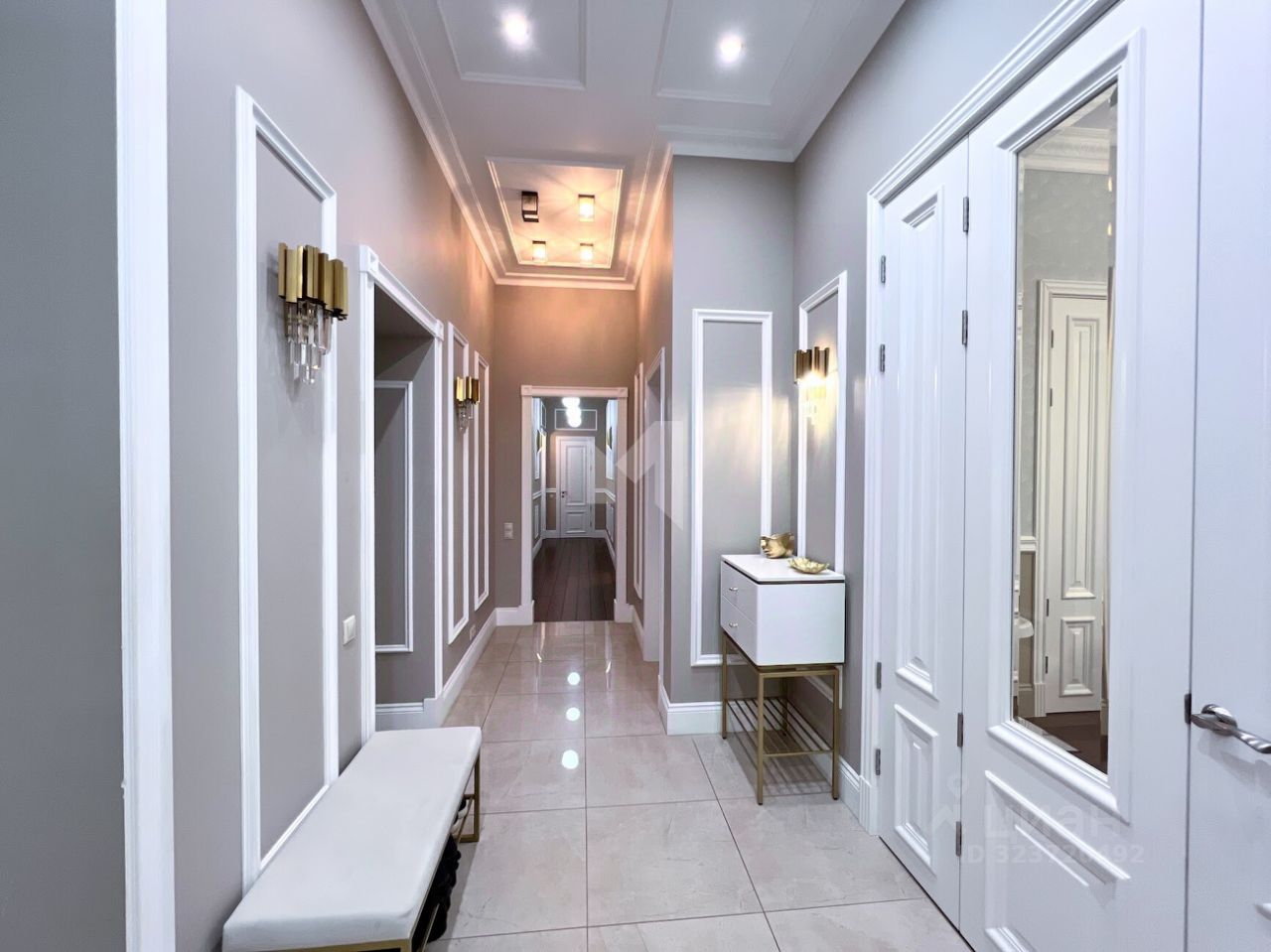 Просторная квартира с 3-мя спальнями общей площадью 287 м² в особняке ''Пречистенка 13'' в Хамовниках. Квартира с дизайнерским ремонтом расположена на 5-м этаже в корпусе 1. Выполнена отделка в стиле неоклассики с использованием высококачественных материалов — премиальная керамическая плитка, мрамор, паркет из ценных пород. Высота потолков 3,8 метра. Квартира полностью меблирована и укомплектована бытовой техникой. Все элементы декора, люстры и светильники подобраны по индивидуальному дизайн-проекту, дополнительным украшением интерьера служат колонны и расписные стены. Функциональная планировка: гостиная с выходом на балкон, кухня-столовая, мастер-спальня с собственной гардеробной и ванной, 2 спальни, 3 санузла, гардеробная, постирочная, холл. Благодаря большому количеству окон пространство наполнено светом, открываются панорамные виды на улицу Пречистенка, Лопухинский переулок и во внутренний двор. Описание комплекса ''Пречистенка 13'' — 8-этажный исторический особняк в стиле неоклассицизм, построен в 1912 по заказу владельца торгово-строительного акционерного общества Якова Рекка. В конце 80-х годов здание реконструировали, в 2014 году был возвращен исторический облик — полукруглый эркер со скульптурами, башенку с часами, внутреннюю отделку восстановили по архивным эскизам. На верхних этажах разместились трехуровневые пентхаусы с просторными террасами общей площадью 1 500 м², в каждой квартире есть возможность установить дровяной камин.