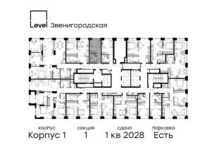 Цена указана с учётом скидки при 100%-й оплате, несубсидированной ипотеке, рассрочке (кроме программы ''Рассрочка 0%'').В жилом квартале продаётся студия площадью 17.40 кв.м white box. Квартира расположена на 11 этаже 48 этажного корпуса 1 в жилом комплексе комфорт класса Левел Звенигородская (компания Левел Group/Левел групп). Отличная транспортная доступность- 5 мин. пешком до метро ''Звенигородская'' (откроется к окончанию строительства),- 18 мин. пешком до станции МЦК ''Хорошёво'' и станции БКЛ ''Народное ополчение'',- 4 мин. на авто до ТТК,- 8 мин. на авто до Садового кольца,- 15 мин. на авто до Кремля. Продуманный архитектурный проект- Концепция от студии Станислава Михаловского, в основу которой легло единение природы и города,- Двухкамерные стеклопакеты в окнах, алюминиевый и ПВХ профиль - в квартирах тепло зимой и прохладно летом,- С верхних этажей откроются панорамные виды на город, Москву-реку, ''Москва-Сити'' и Москворецкий парк,- Лобби со всеми удобствами: окна в пол, высокие потолки до 4,7 м, лаунж-зоны, колясочные, гостевые санузлы и мойки для лап животных,- Централизованные водонагреватели гарантируют круглогодичную подачу горячей воды в каждую квартиру. БлагоустройствоКонцепция благоустройства разработана совместно с бюро UNK landscape. Высота башен приближается к 200 метрам - они словно касаются неба. Небесный простор проецируется на территорию двора с помощью подсветки, визуально увеличивая пространство и отражаясь в авторских элементах архитектуры.На территории площадью 0,45 га расположатся:- ''Облако событий'' - место встреч и общения,- ''Облако спорта'' - всё для поддержания себя в форме,- ''Облако принятия решений'' - пространство для работы на свежем воздухе,- ''Облако спокойствия'' - для отдыха в тишине природы,- ''Облако игр'' - площадки для подростков и самых маленьких. ИнфраструктураВ жилом комплексе откроется 21 коммерческое помещение: продуктовые лавки, кафе, салоны красоты, службы доставки и творческие студии.Этап 1 включает строительство двухуровневого подземного паркинга. Всего здесь расположится 351 машино-место, включая семейные места, и 264 кладовых помещения.В распоряжении жителей развитая инфраструктура района: 15 супермаркетов, 5 спортивных объектов, 9 медучреждений, 7 детских садов, 4 школы, 3 благоустроенных парка - всё в шаговой доступности. ИнженерияКомфортное перемещение внутри домов будут обеспечивать надёжные лифты с доступом в паркинг с жилых этажей. В каждом корпусе предусмотрено до шести кабин, включая сервисные лифты.Попасть на территорию комплекса можно только по единому ключу доступа. Видеонаблюдение установлено на входах в подъезды, в лобби, в общих зонах, на въезде в паркинг. Гости смогут связаться с жителями дома через входные видеопанели, а управлять доступом на территорию можно через видеодомофон или приложение на телефоне.