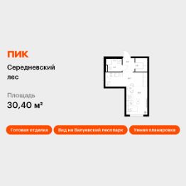 Продаётся квартира-студия площадью 30,4 кв.м на 10 этаже 16 этажного дома (Корпус 2.1.3, Секция 3) проекта ПИК Середневский лес. Светлый просторный подъезд на уровне земли, функциональная планировка, большие окна, c отделкой. В 10 минутах на автомобиле находится станция метро ''Внуково'', а в 15 минутах — станции ''Филатов Луг'' и ''Саларьево''. От них до центра Москвы всего 3540 минут. На рейсовом автобусе от жилого квартала до метро ''Филатов Луг'' — 20 минут. На территории ''Середневского леса'' появилось общественное пространство с игровыми площадками, местами для отдыха, пешеходными маршрутами и велопарковкой — для прогулок, отдыха и встреч жителей квартала. Также внутри жилого квартала уже открыта школа на 1100 мест и детский сад для 325 малышей. В дальнейшем откроется ещё один сад для 340 детей. Артикул 1037973 (Застройщик ООО ''Специализированный застройщик Середнево'')
