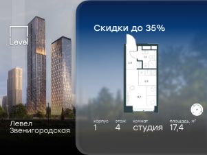 1-к, Левел Мичуринский ЖК, 8 Показать на карте